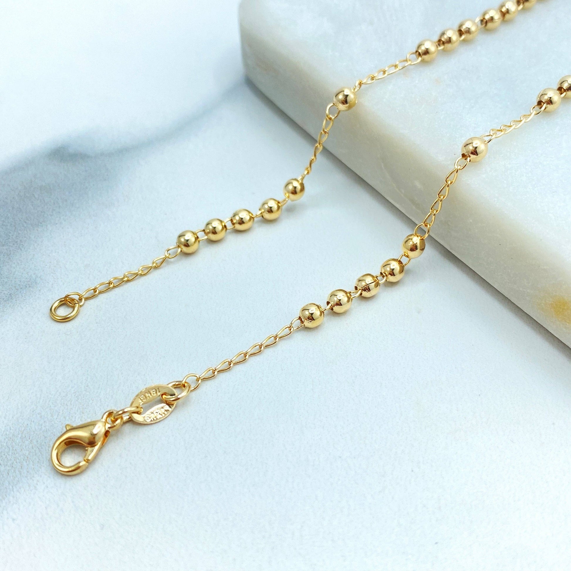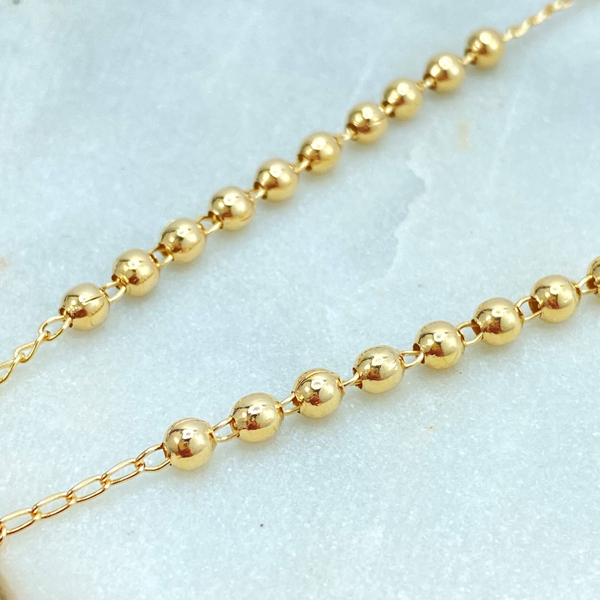 18k Gold Filled Gold Beaded Rosary with La Milagrosa Charm, Gold Balls Rosary with Miraculous Virgin. Rosaries Size: Length: 18 Inches | Drop Length: 3.5 Inches | Width: 3mm | Thickness: 1mm