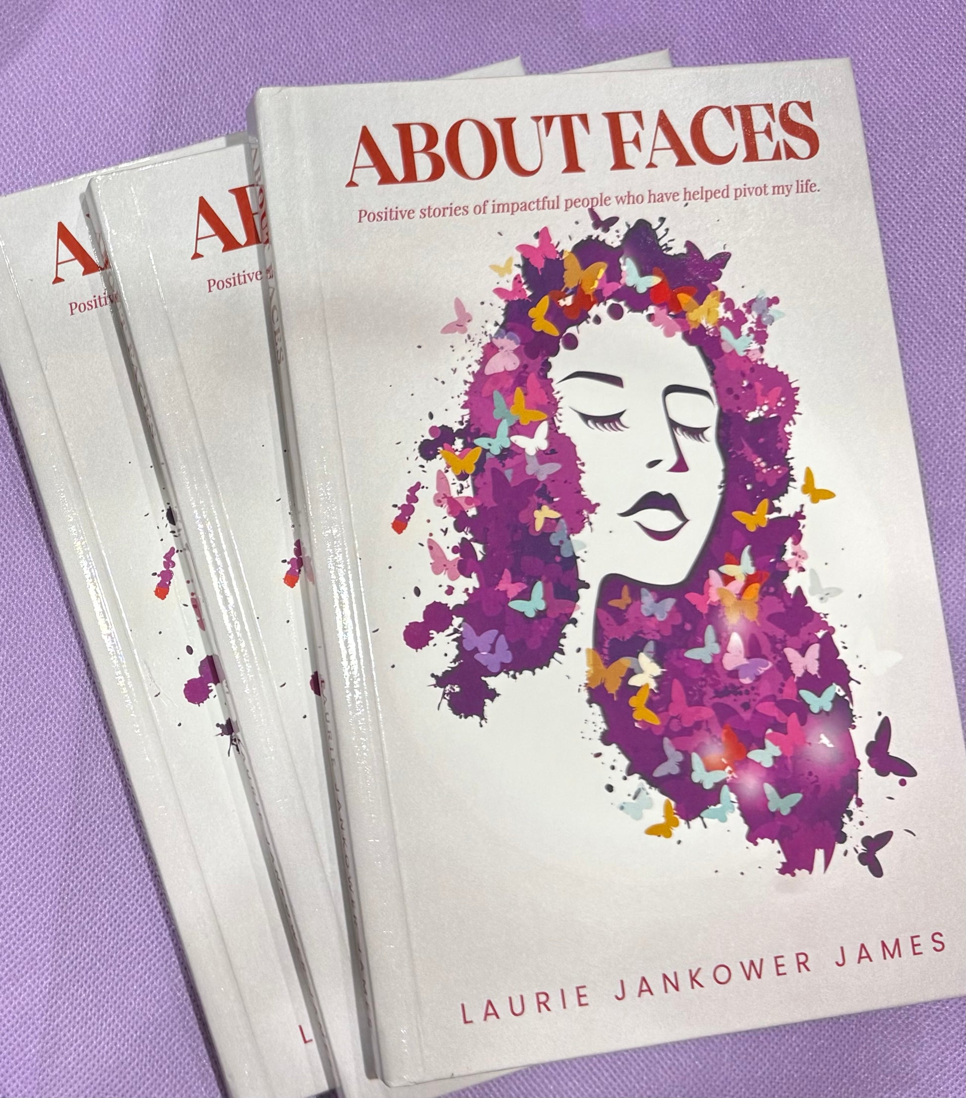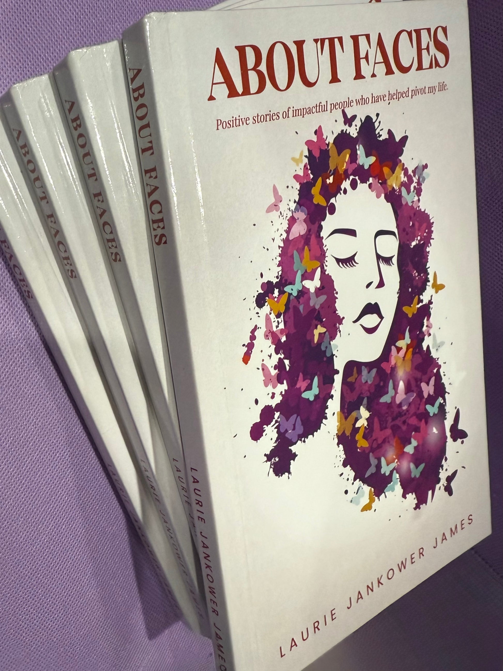 About Faces Book by our Lafayette local author, Laurie Jankower James. Pick up your autographed book of positive stories of impactful people who have helped pivot Laurie’s life.