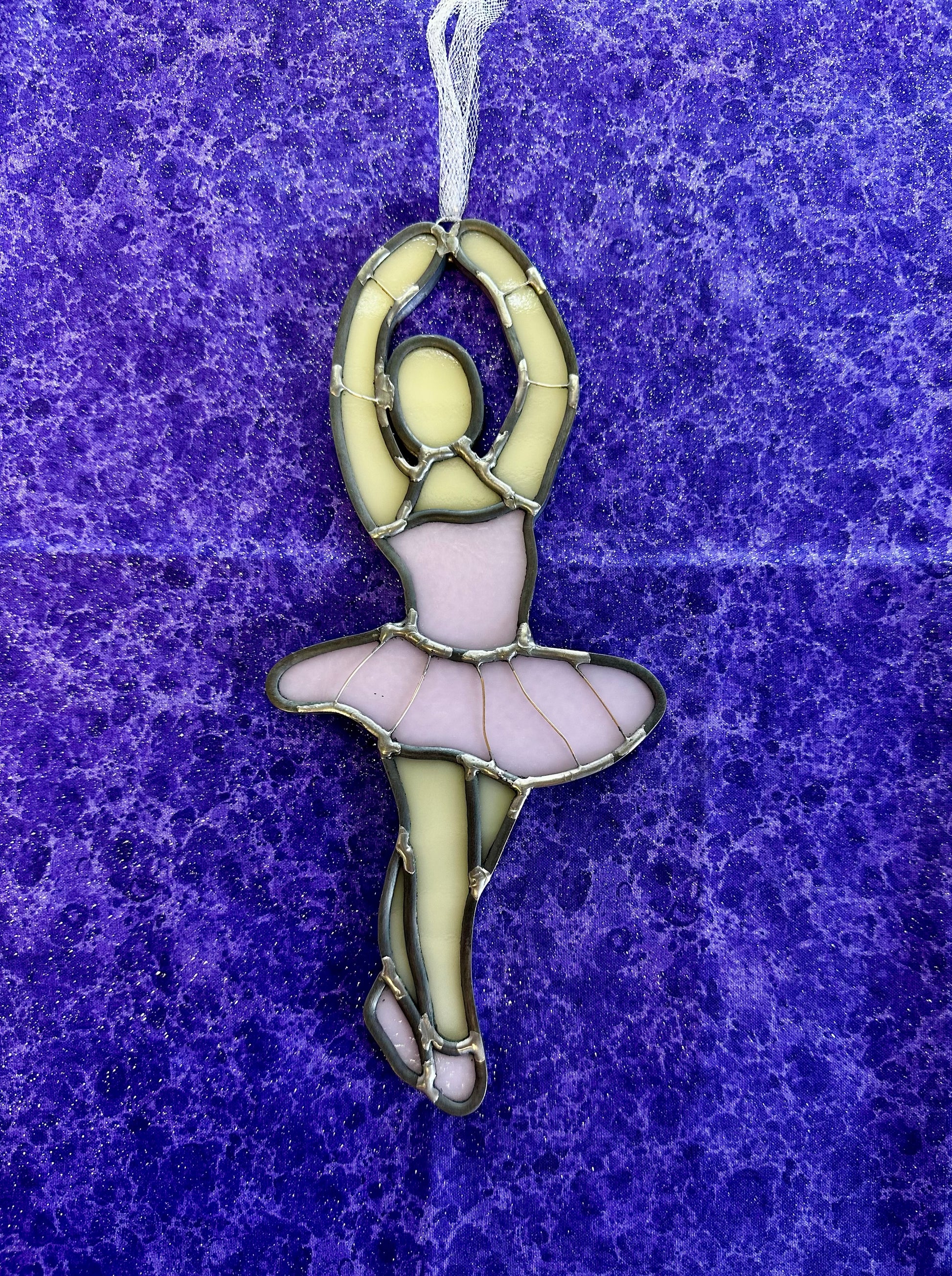 Ballerina stained glass hanging. Handcrafted by a local artisan, this is a unique gift honoring your ballerina.