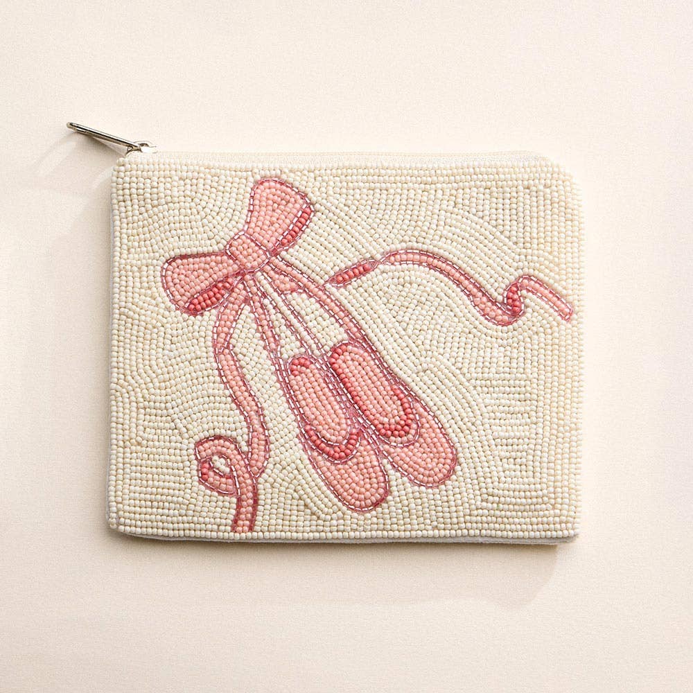 Ballet Slipper Bow Seed Beaded Mini Pouch Bag