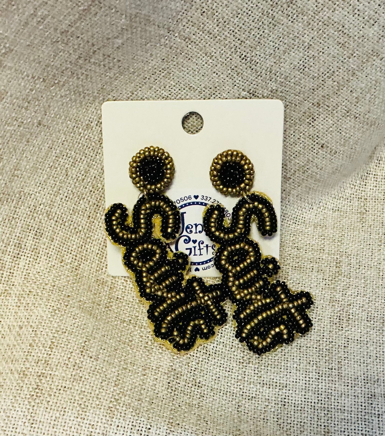 Show your Saints pride with these eye-catching post beaded earrings! Lightweight and comfortable, these black and gold beauties are perfect for game day or everyday wear. The vibrant team colors make a bold statement while the quality beading ensures durability. Score style points while supporting your team!