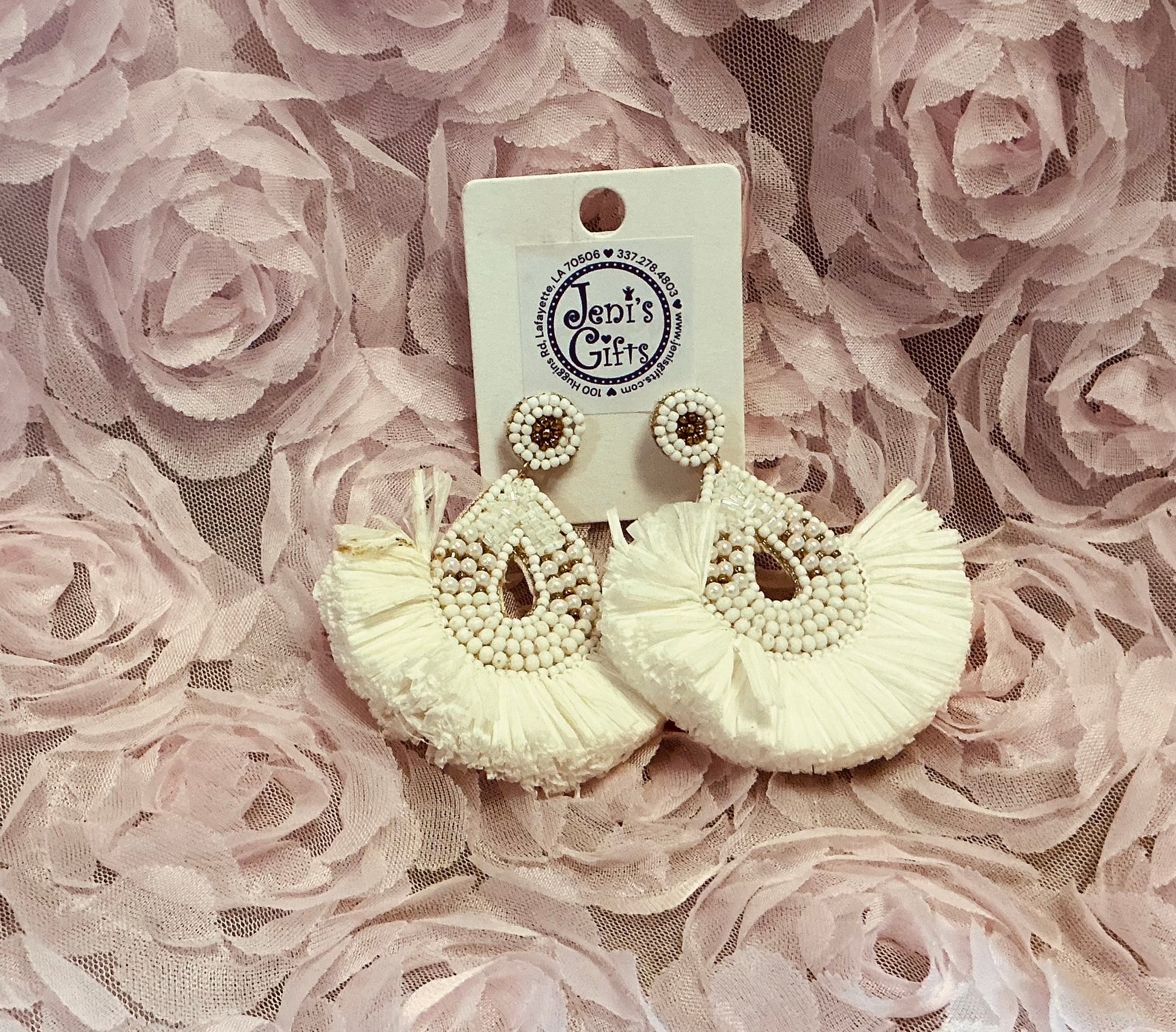 Add a fresh, stylish touch to your look with these white Beaded Teardrop Earrings featuring a fan flare design. The crisp white beads highlight the elegant teardrop shape, while the flare detail adds a unique twist that catches the eye. Lightweight and comfortable, these earrings are perfect for elevating both casual and dressy outfits with effortless charm.