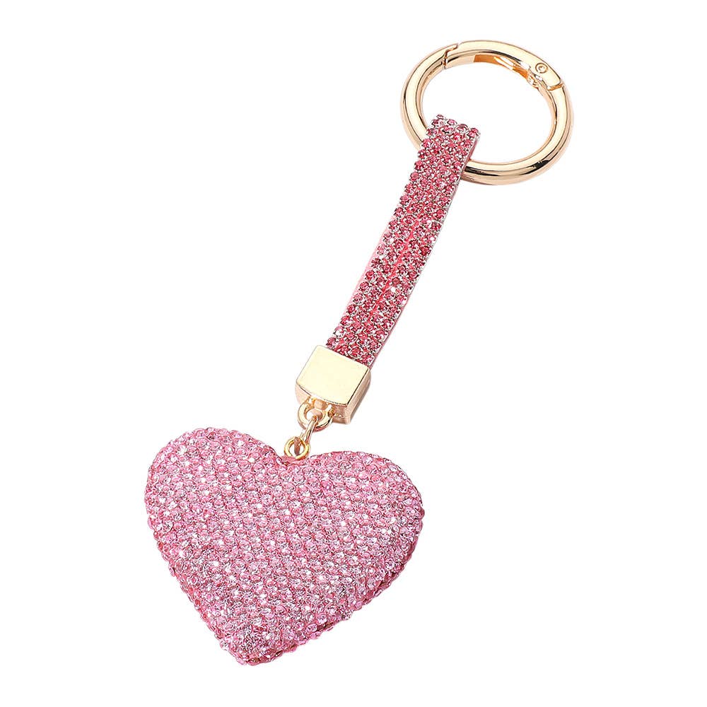 This sparkling heart keychain adds instant glam to your everyday essentials. Features a full rhinestone design, textured strap, and polished ring for easy attachment to keys or bags.