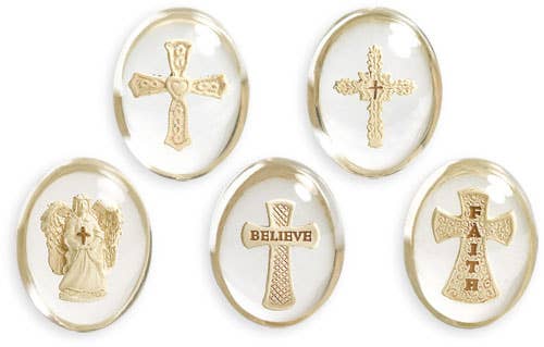 The Comfort Cross Stones offer a variety of intricately detailed crosses in a signature ivory color and serve as a comforting reminder of faith. Choice of Stones: Comfort Cross, Antique Cross, Angel with Cross, Believe, or Faith with envelopes. Poem is printed on envelope: A cross to bring you comfort and hope from above. Sent to remind you of the gift of God's love. Count all your blessings as you go through each day. Let God heal your heart in his own special way. Resin Stones are 1.5"(H) x 1"(W) x 0.5"(D)
