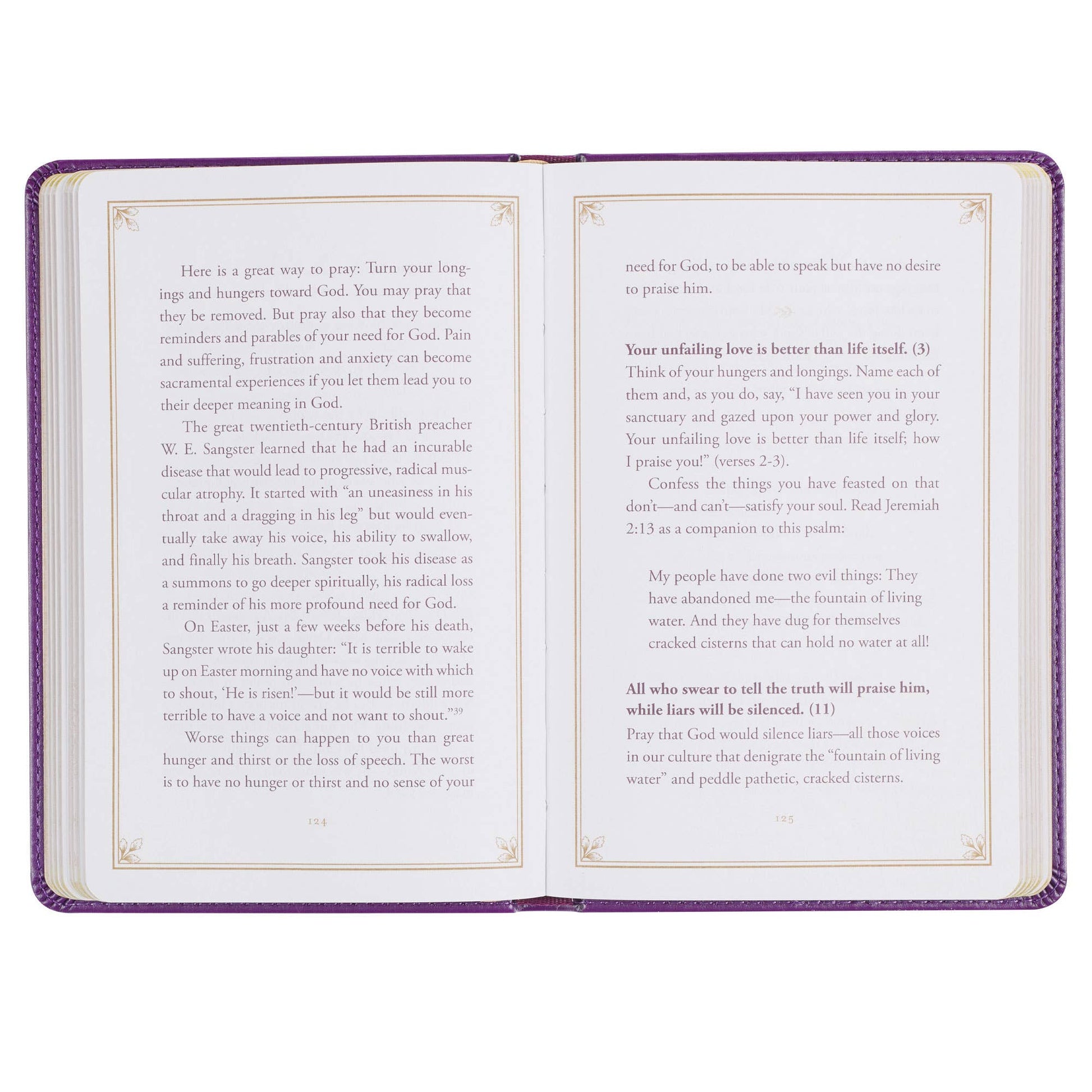 The Praying the Psalms Purple Faux Leather Prayer Book offers reflections on fifty passages from the Psalms. These scriptures hold songs of praise, cries for help, glad celebrations, and humble confessions that will renew your heart, transform your prayer life, and draw you closer to God.