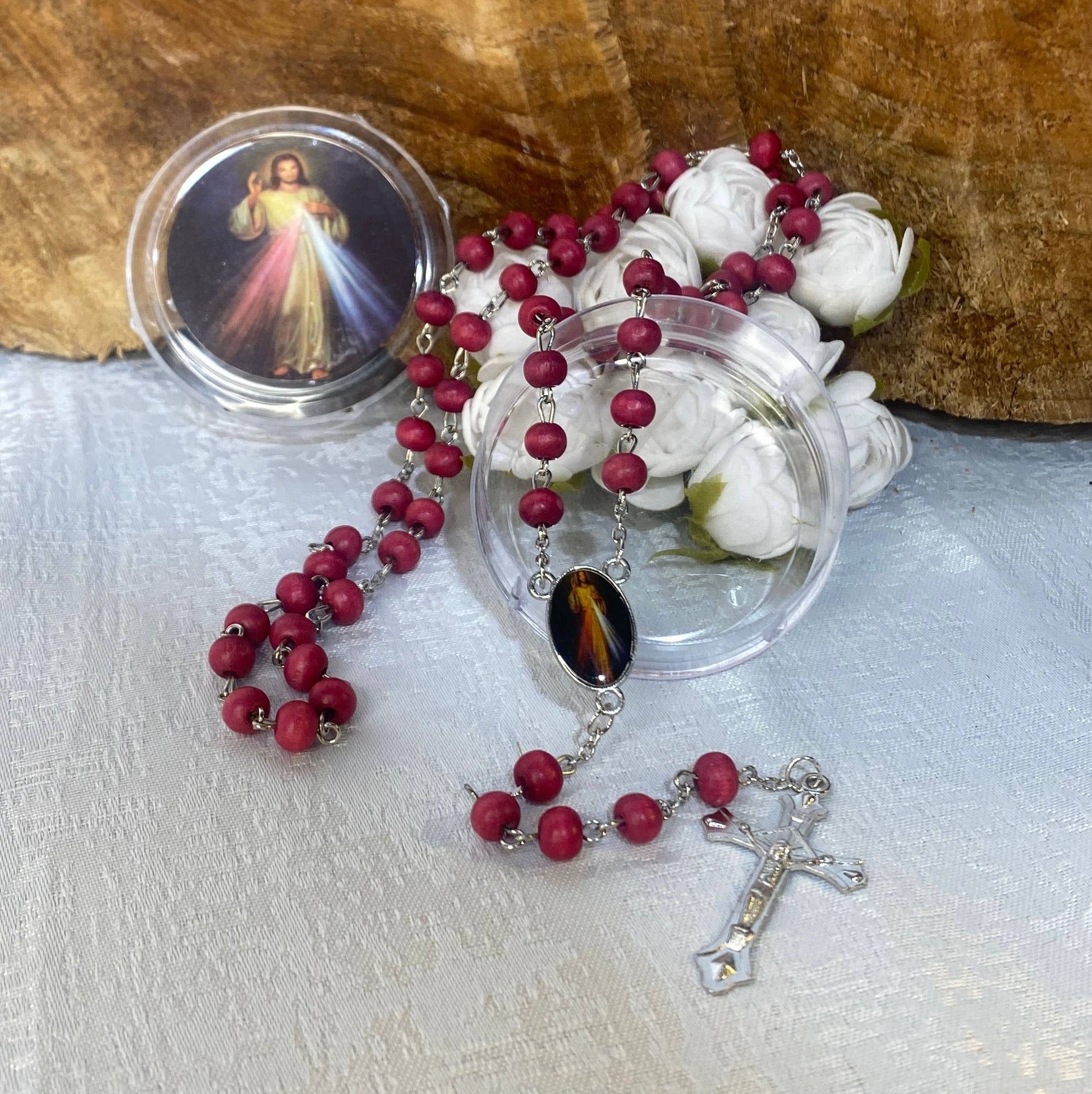 Capture the essence of devotion with our exquisitely crafted Wooden Rosary, delicately nestled in an elegant plastic case, featuring a high-definition image of The Divine Mercy, each bead resonates with spiritual significance.
