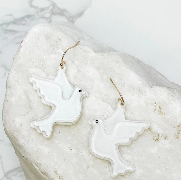 Add some whimsical charm to your jewelry collection with the Love Dove Dangle Earrings from Jeni's Gifts. These elegant earrings dangle at 1.75" with a touch of shimmer, perfect for adding a sophisticated touch to any outfit. Plus, they are lead and nickel compliant for safety and comfort. Fly high and soar with these earrings!