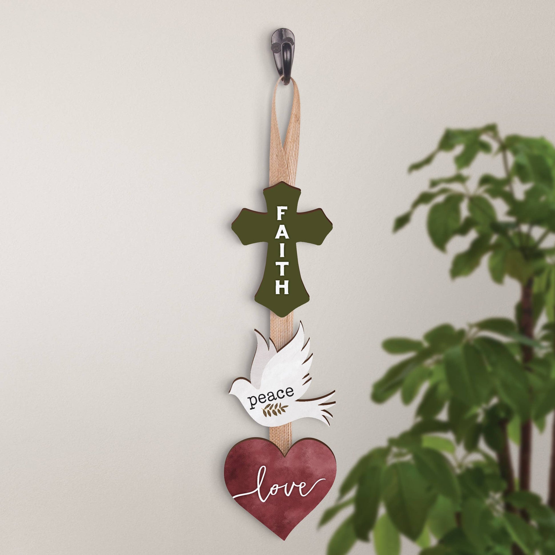 These handcrafted signs pair wooden shapes with ribbon for easy display. Pieces feature sentiments of encouragement and inspiration and are combined with fun, playful artwork and decorative accents. Hang from a wall, on a hook, or off a door handle.
