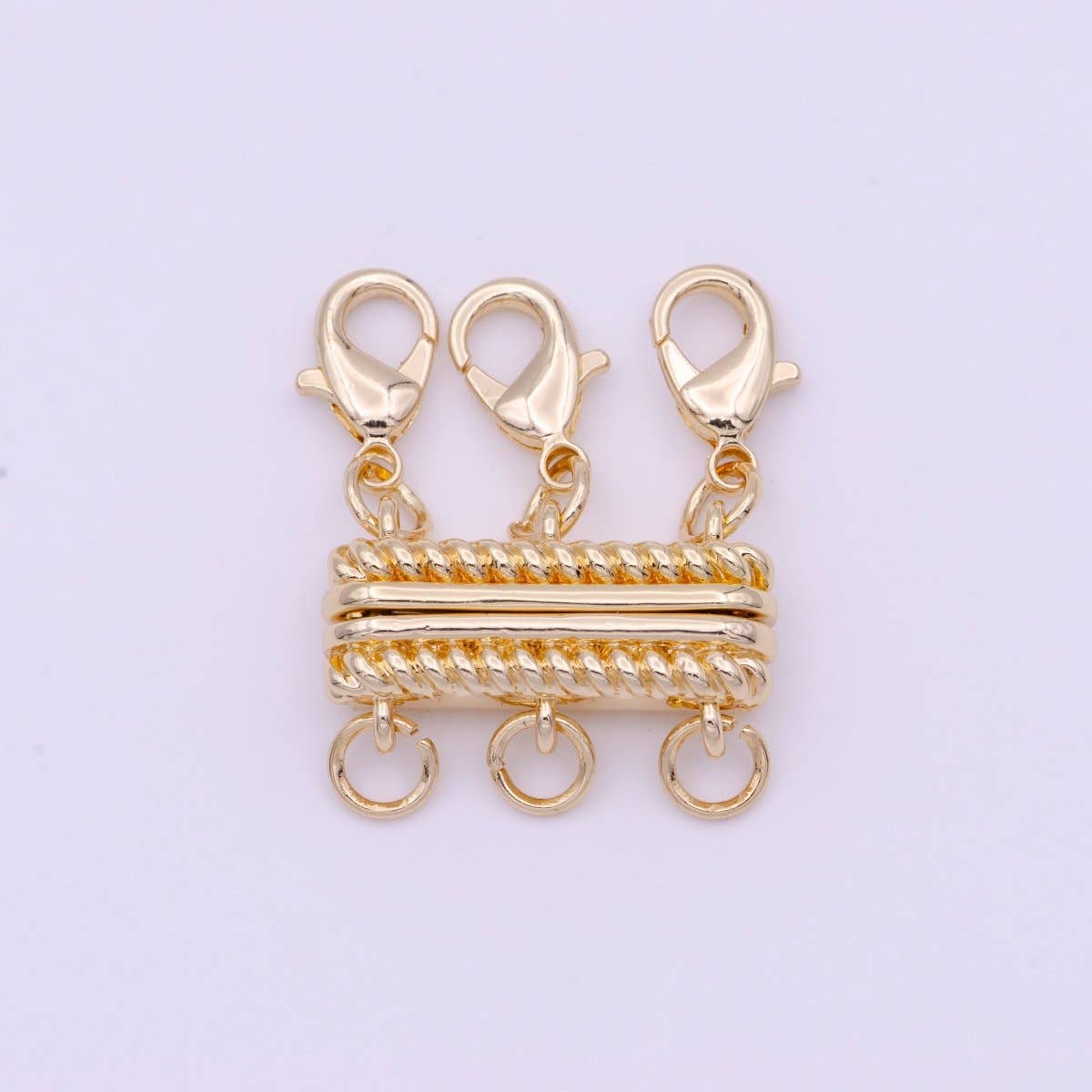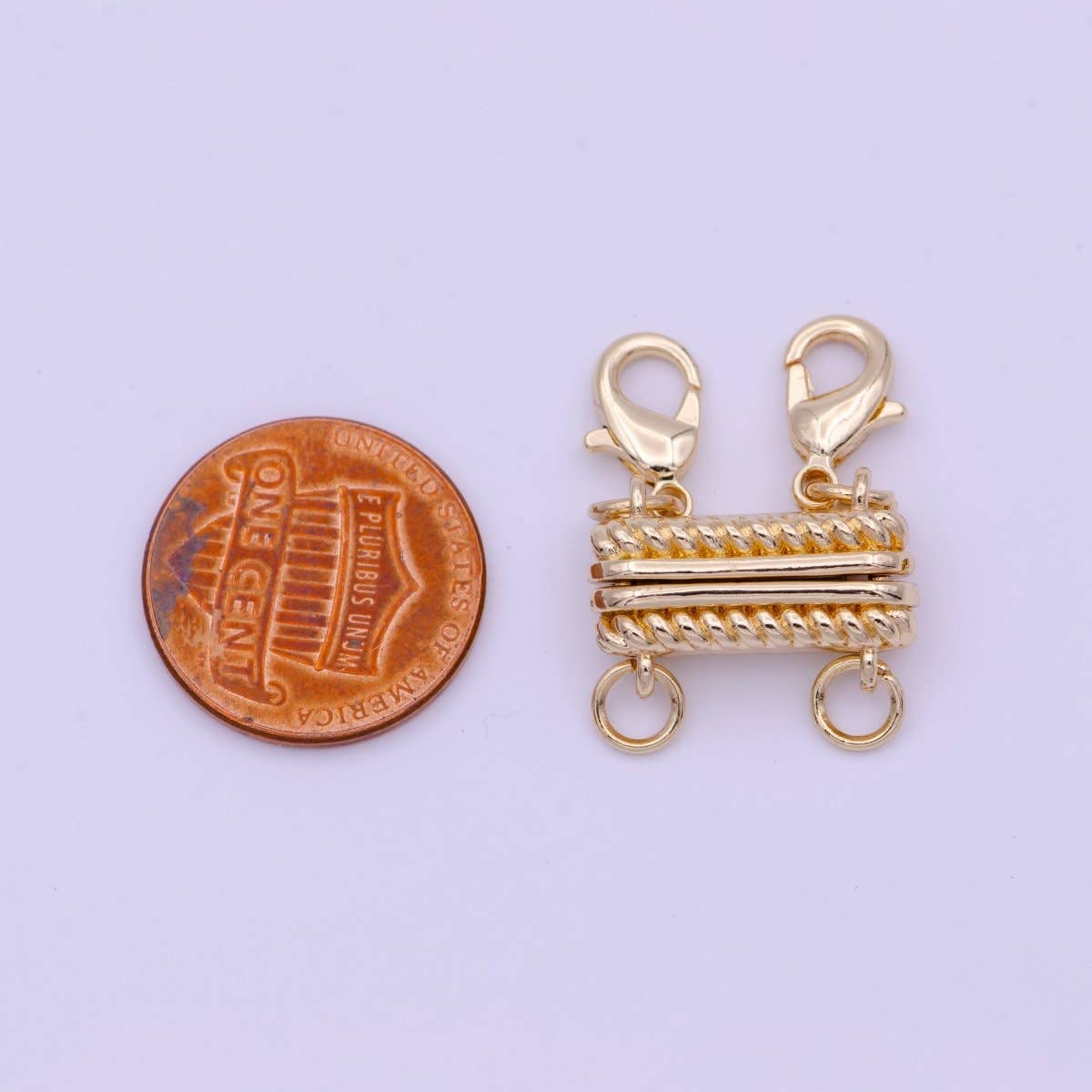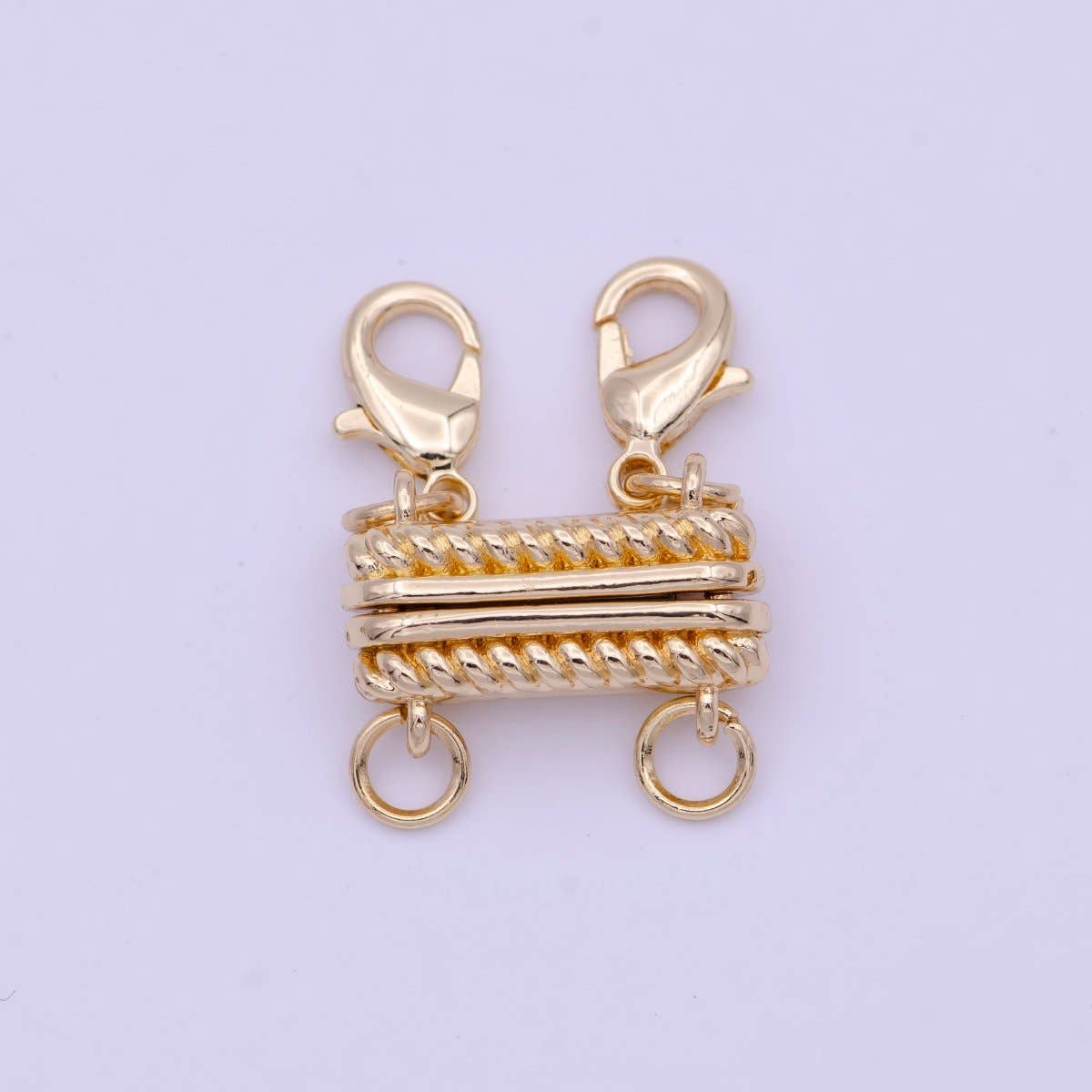 The Gold Braided Magnetic Lobster Clasps Detangler from Aim Eternal is an essential addition to your jewelry supply. With its size of 26.2mm x 18mm, it's perfectly proportioned for various jewelry designs. Its magnetic function ensures secure and easy attachment. Ideal for every moment of your life, it's a versatile accessory that's as practical as it is beautiful. Enhance your creations with this unique clasp.