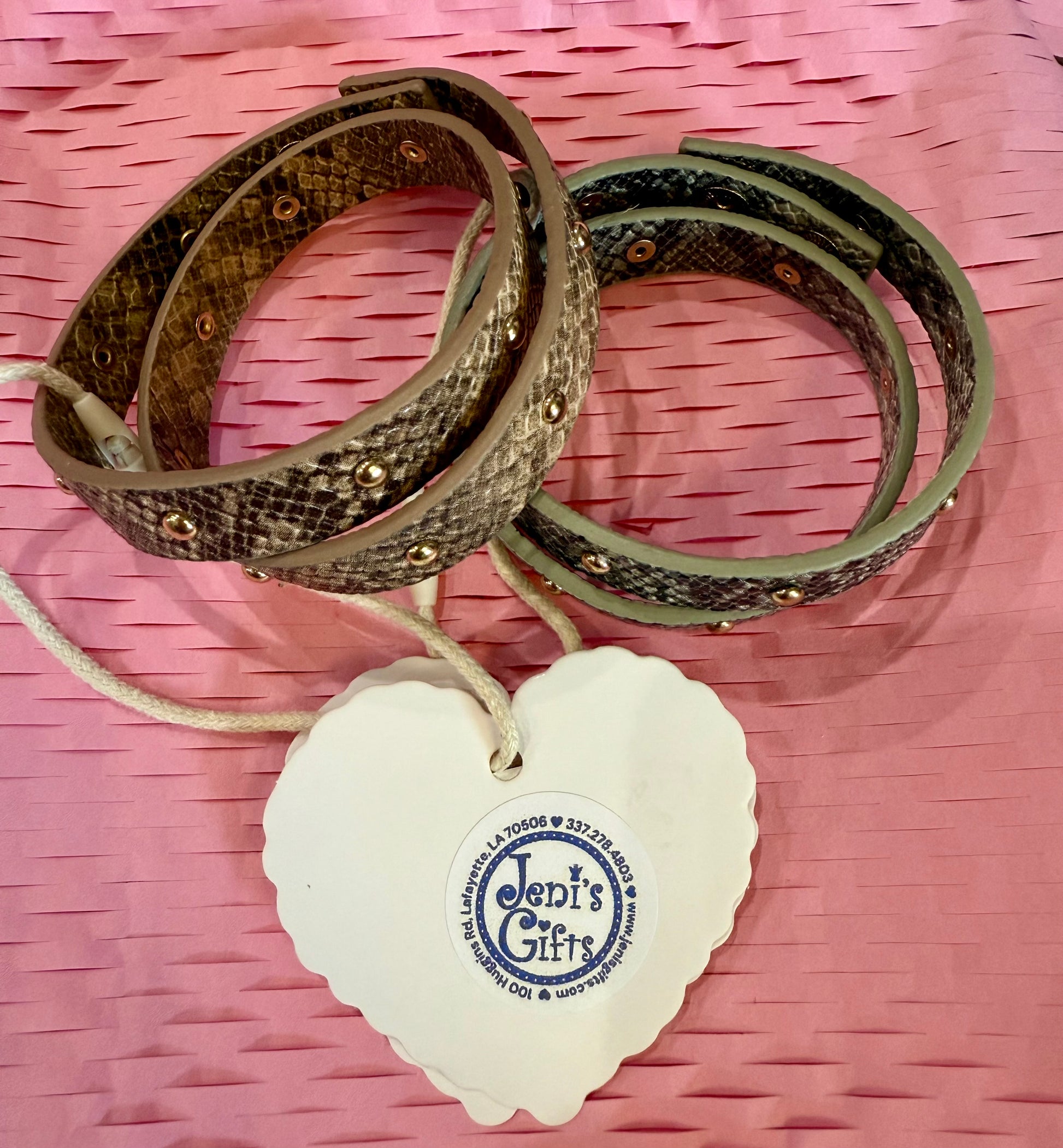 Slither into style with our Grey Snake Bracelet! This fun accessory mimic the mesmerizing patterns of snakeskin with its textured, scale-like surface in black & grey tones. Surprisingly lightweight and flexible, it wraps comfortably around your wrist for that perfect "I just casually draped a fashionable reptile on my arm" look. Don't worry—it's all the hiss without the bite!
