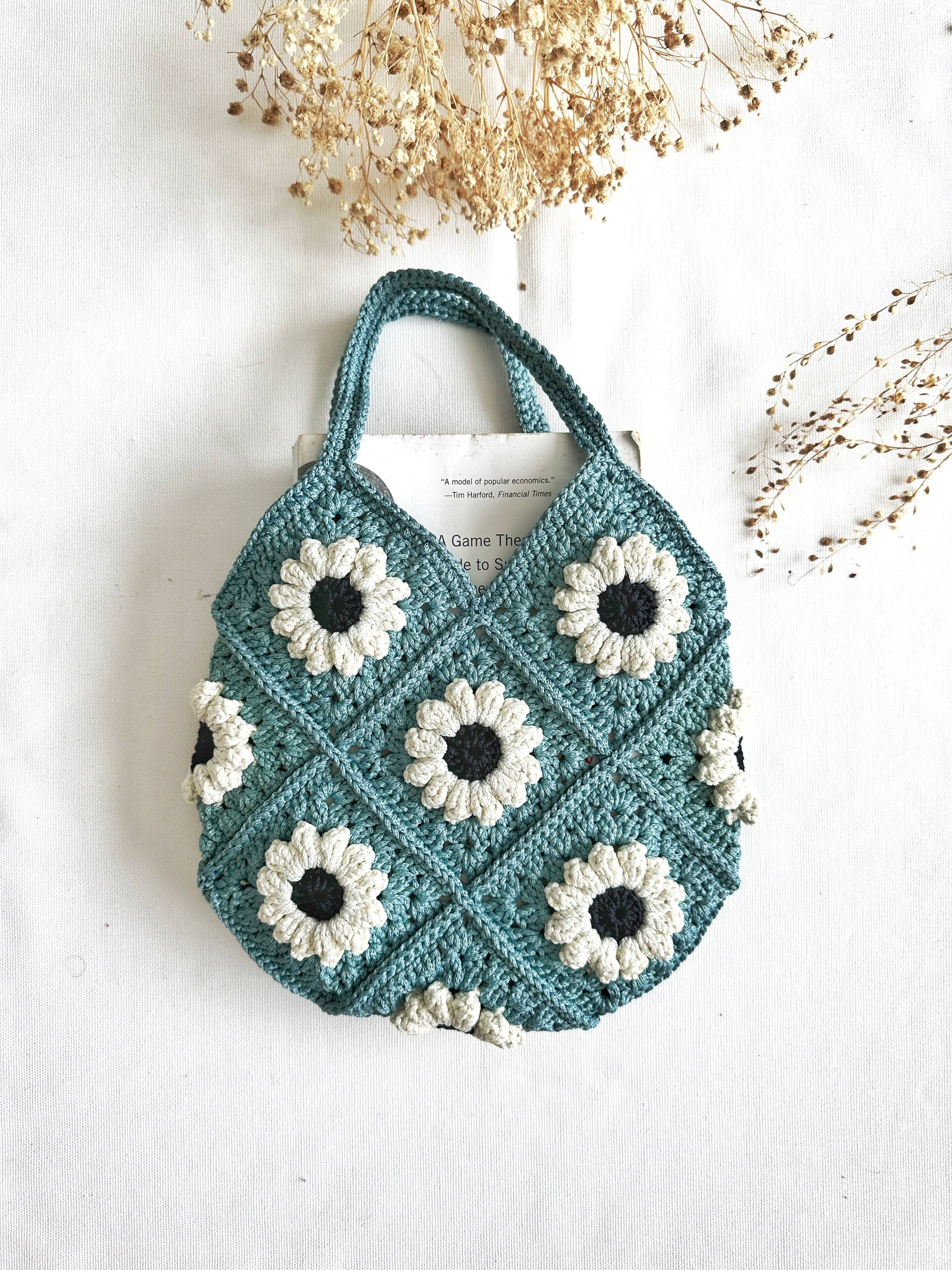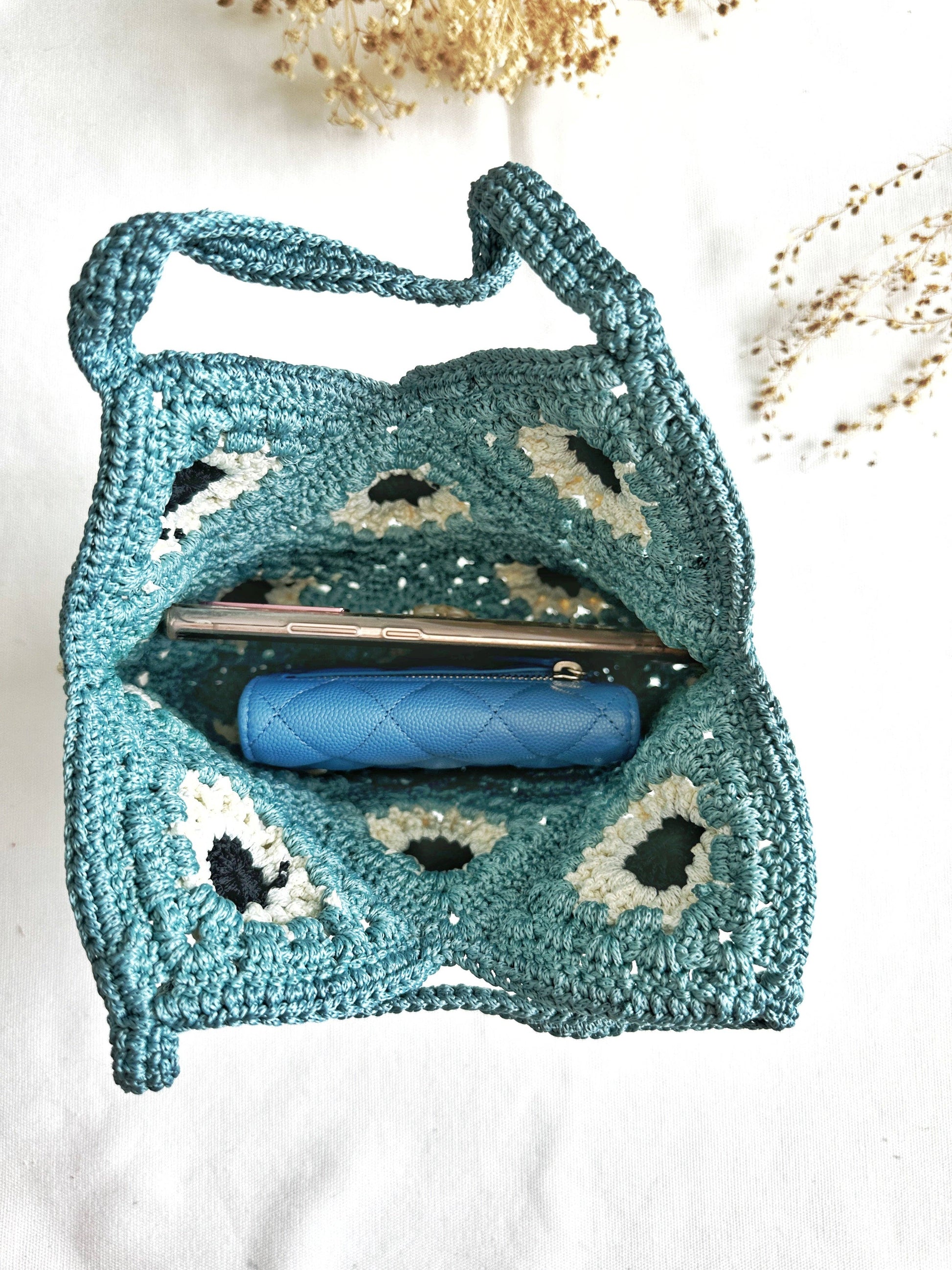 Hand-Crochet Daisy Mini Blue Tote Bag