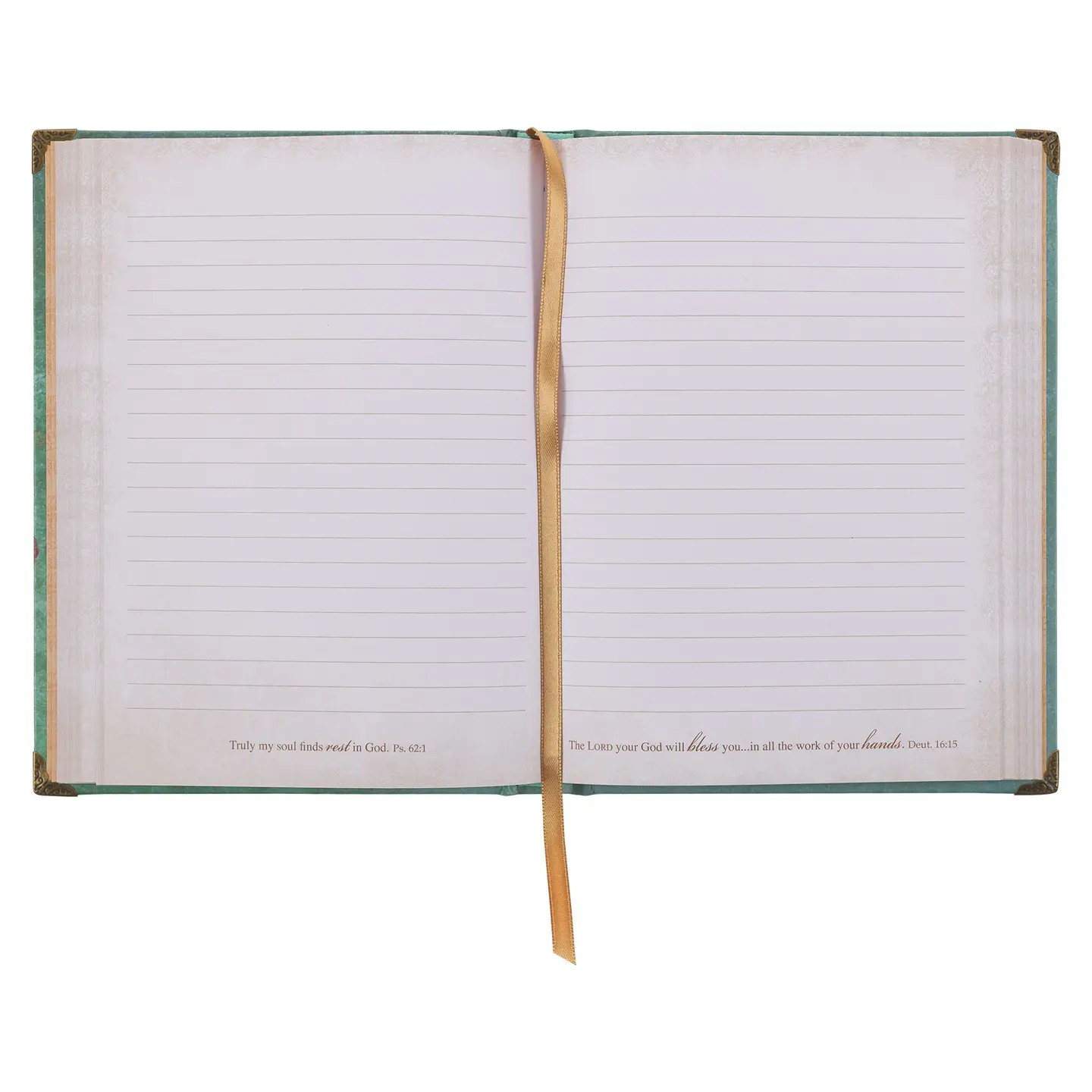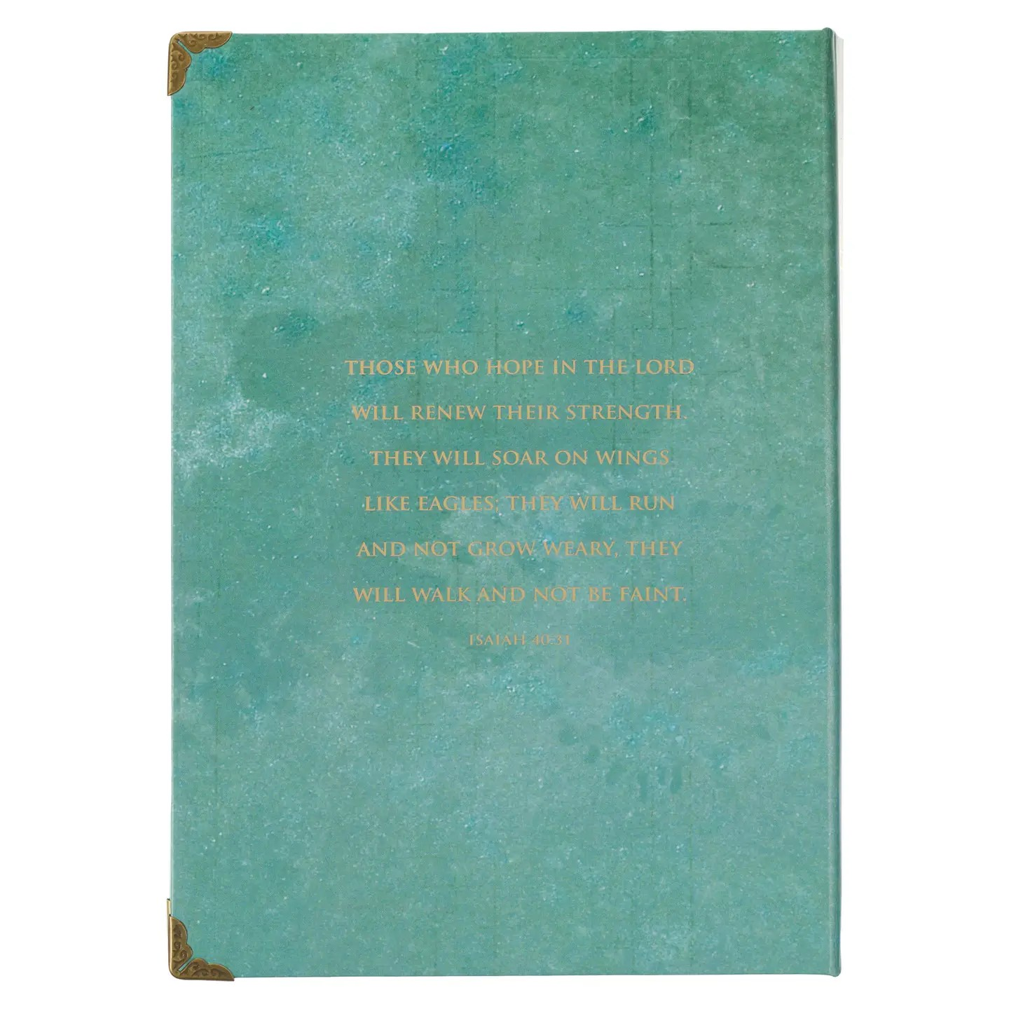 Channel your hopes for the future into the pages of the Teal Hope Butterfly Hardcover Journal and take comfort in knowing that God will restore both your strength and faith, infusing you with a renewed sense of purpose. Eastern Tiger Swallowtail Butterfly design, Teal pearlescent cover, Gold-foiled text, Those who hope in the Lord will renew their strength. They will soar on wings like eagles; they will run and not get weary, they will walk and not faint., Isaiah 40:31, Metal corners, Foil accents, 288 lined pages, Scripture on each page, Size: 8.3" x 6.2"