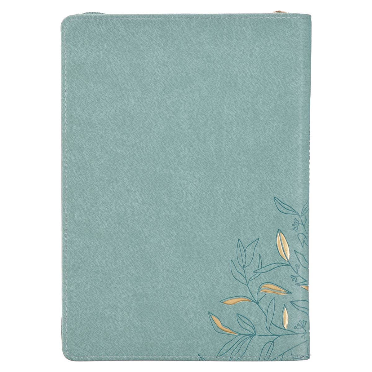 Heat-debossed leaf and stem design, Gold-foiled decorative accents, Gold-foiled text, Strength and dignity, Proverbs 31:25, Flexcover, Zipper closure, Gold-toned zipper pull, Ribbon marker, One-color interior, 336 lined pages, Scripture on every page, Presentation page, Size: 9" x 6.4" x .9" (229 x 163 x 23mm)