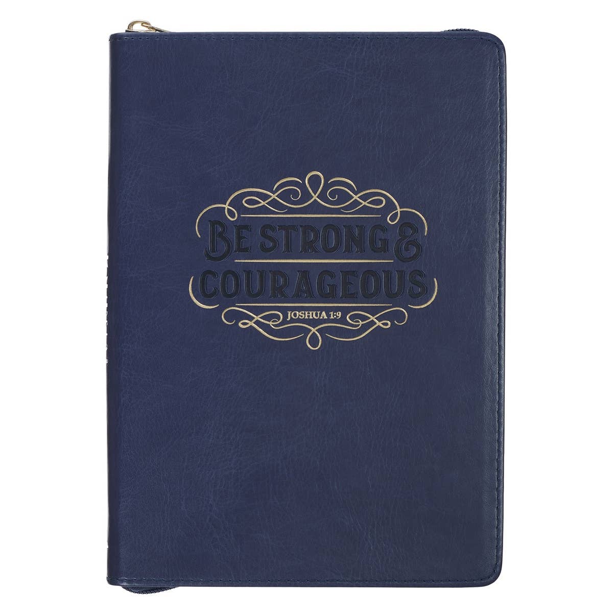 Journal Zip Navy Be Strong & Courageous Josh. 1:9