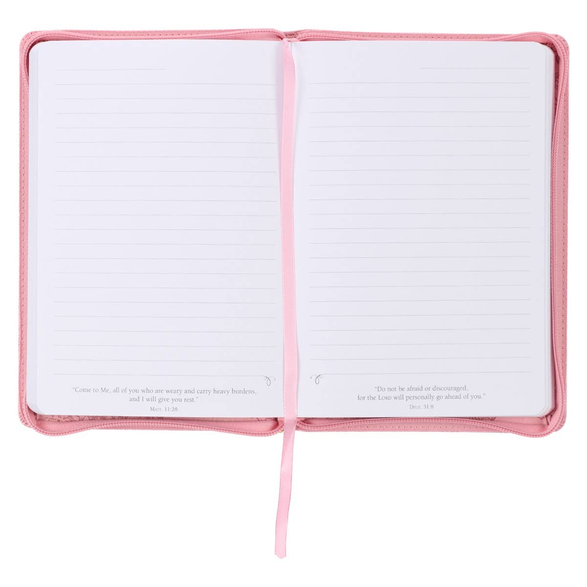 Rejoice in the goodness of God as you pour out your gratitude in the My Strength and My Song Pink Faux Leather Classic Journal with Zippered Closure. This gorgeous journal conveys a beautiful message about God's sustaining power. The pages of this classic journal are the perfect place to record all the instances of answered prayer in your life.
