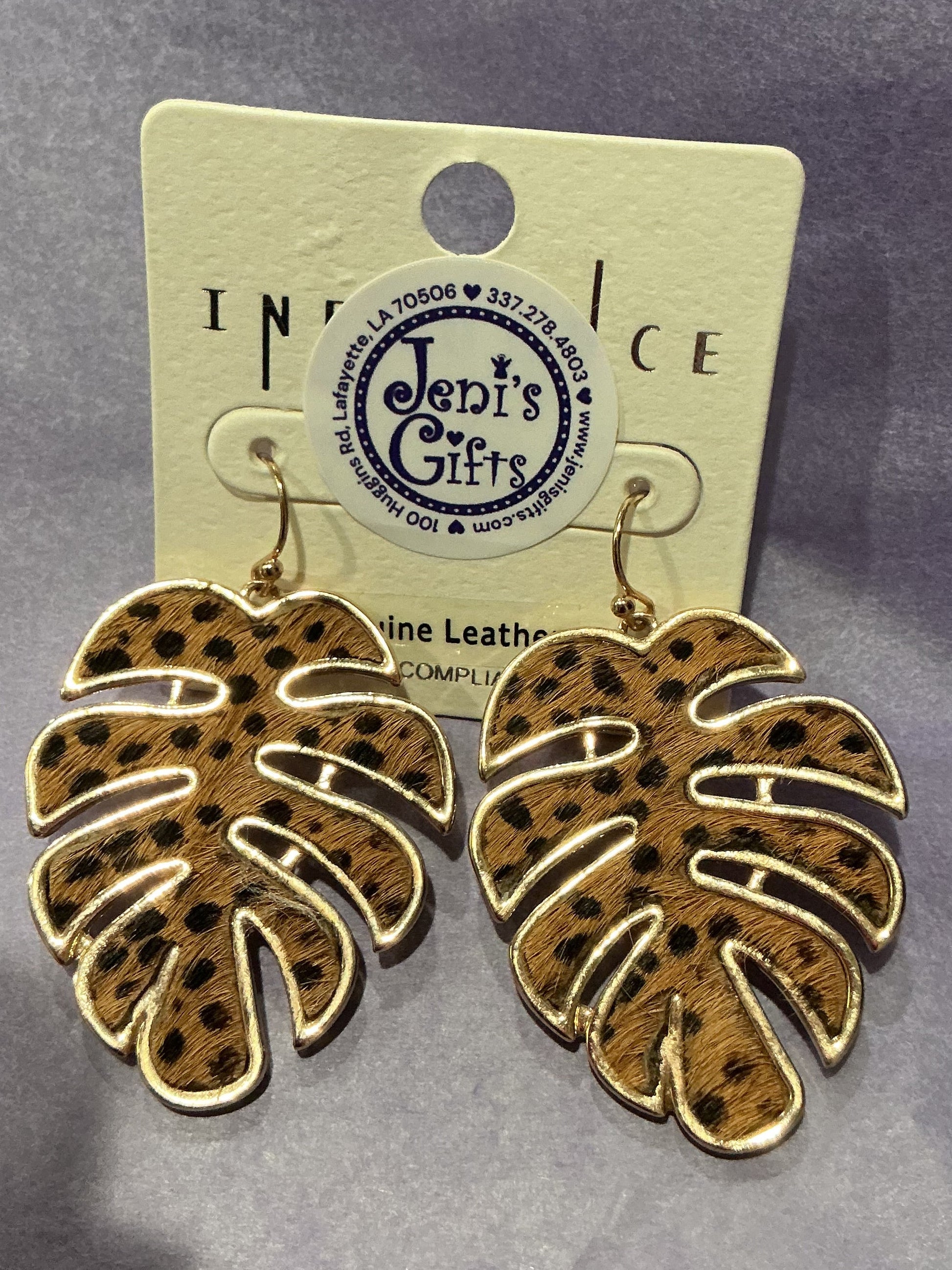 Large Leopard Genuine Leather Fur Leaf Dangles
