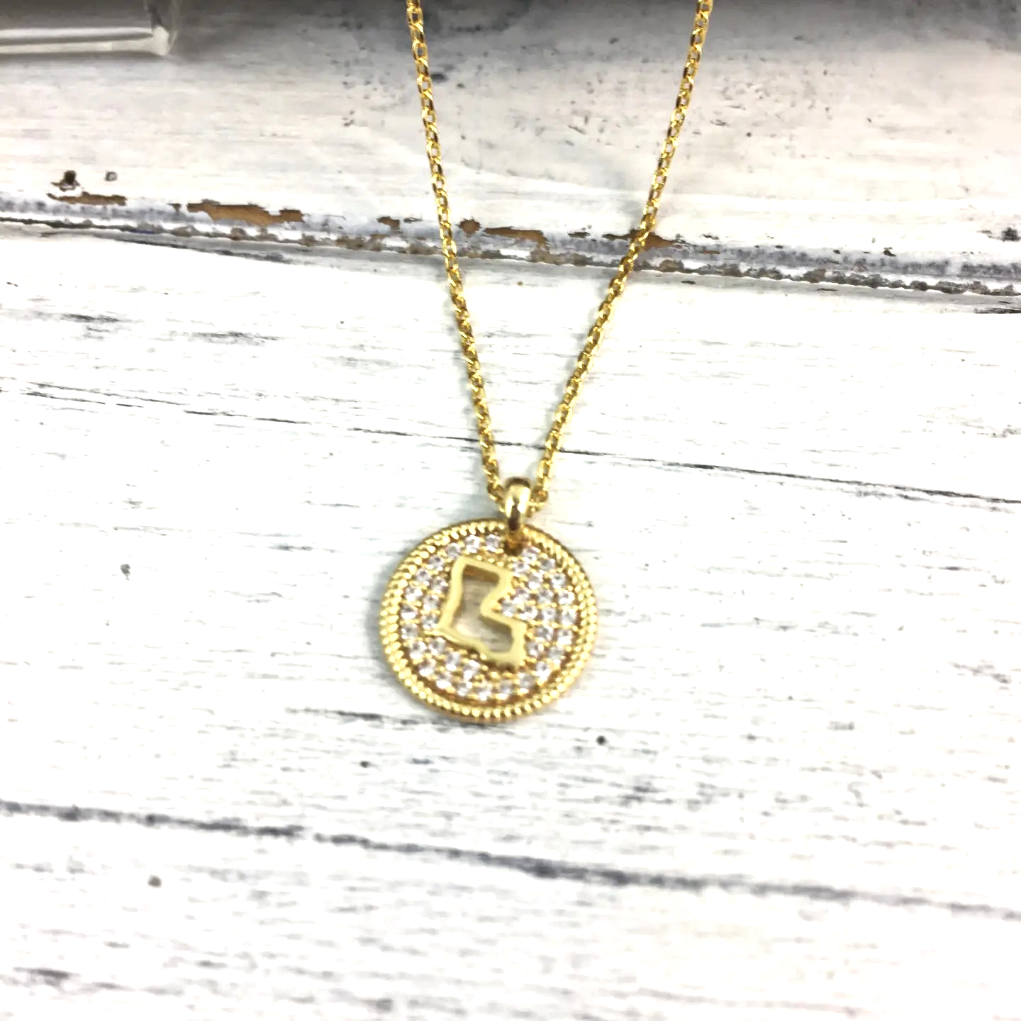 This is our beautiful, dainty Louisiana state rhinestone necklace! This item is made of cubic zirconia and is gold dipped! It is also adjustable to the following lengths: 15.5 in, 16.5 in, 17.5 in.