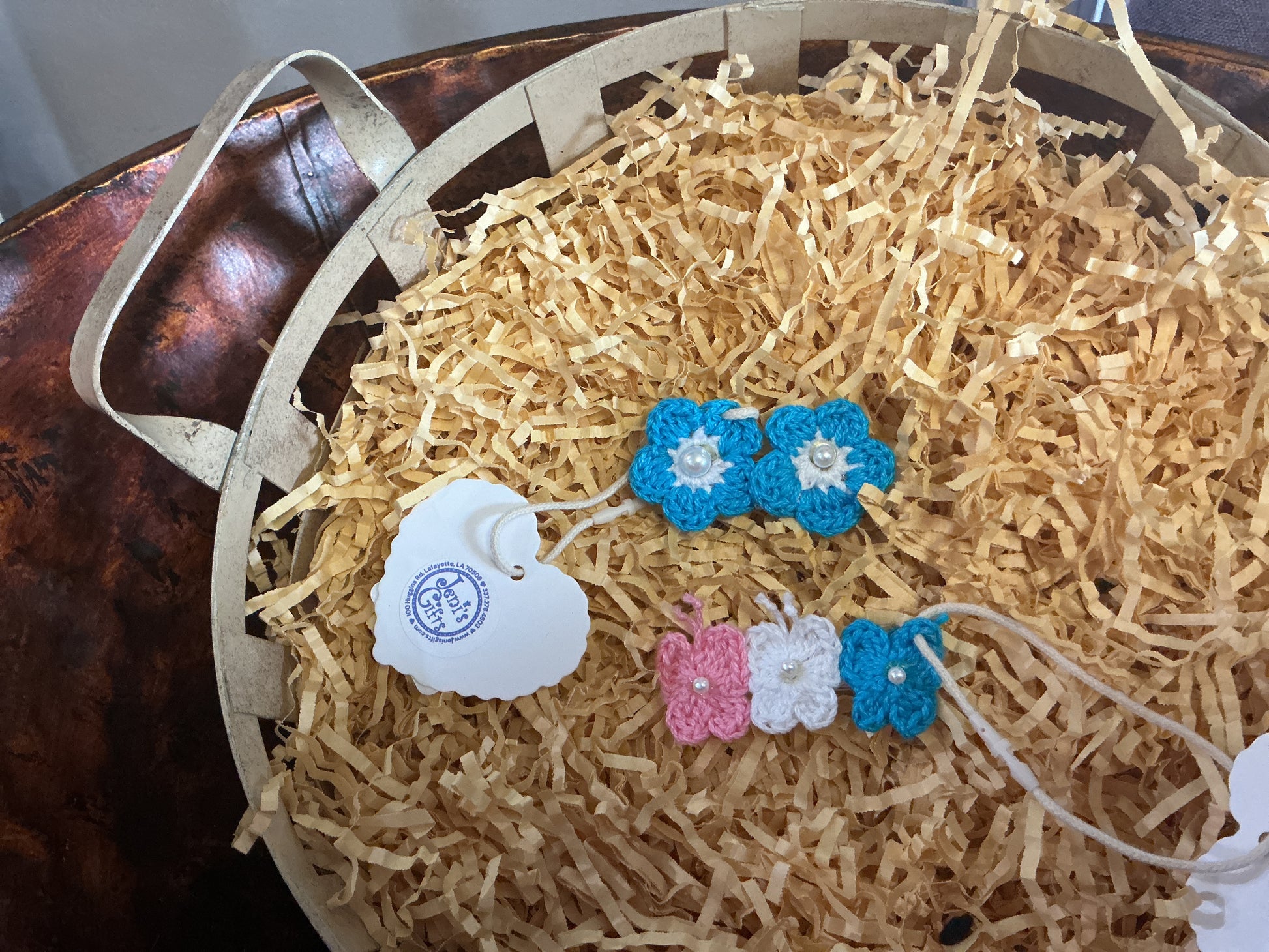 Precious mini blue and white flower barrette with pearl accents. Also we have the triple butterflies in pink, white and blue with pearl accents.