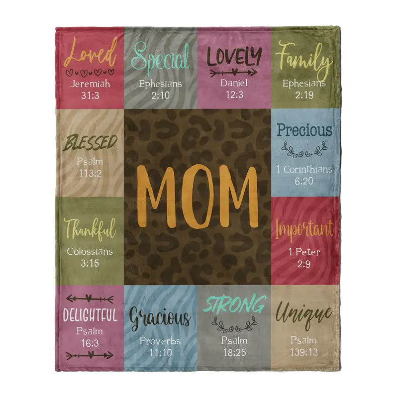Wrap your mom in cozy love with this super soft 50" x 60" Mom Scripture Blanket. Made from 100% polyester, it’s perfect for snuggling up during storytime or movie nights. Machine washable for easy care, this blanket combines comfort and convenience with a heartfelt touch. A perfect way to keep mom warm and reminded of your love!