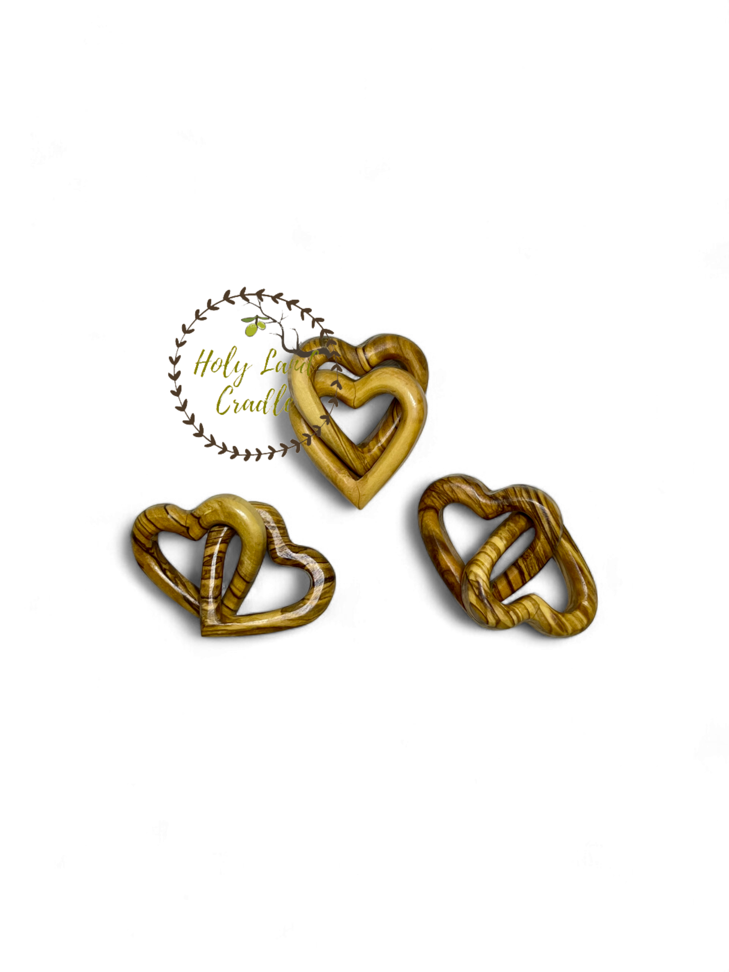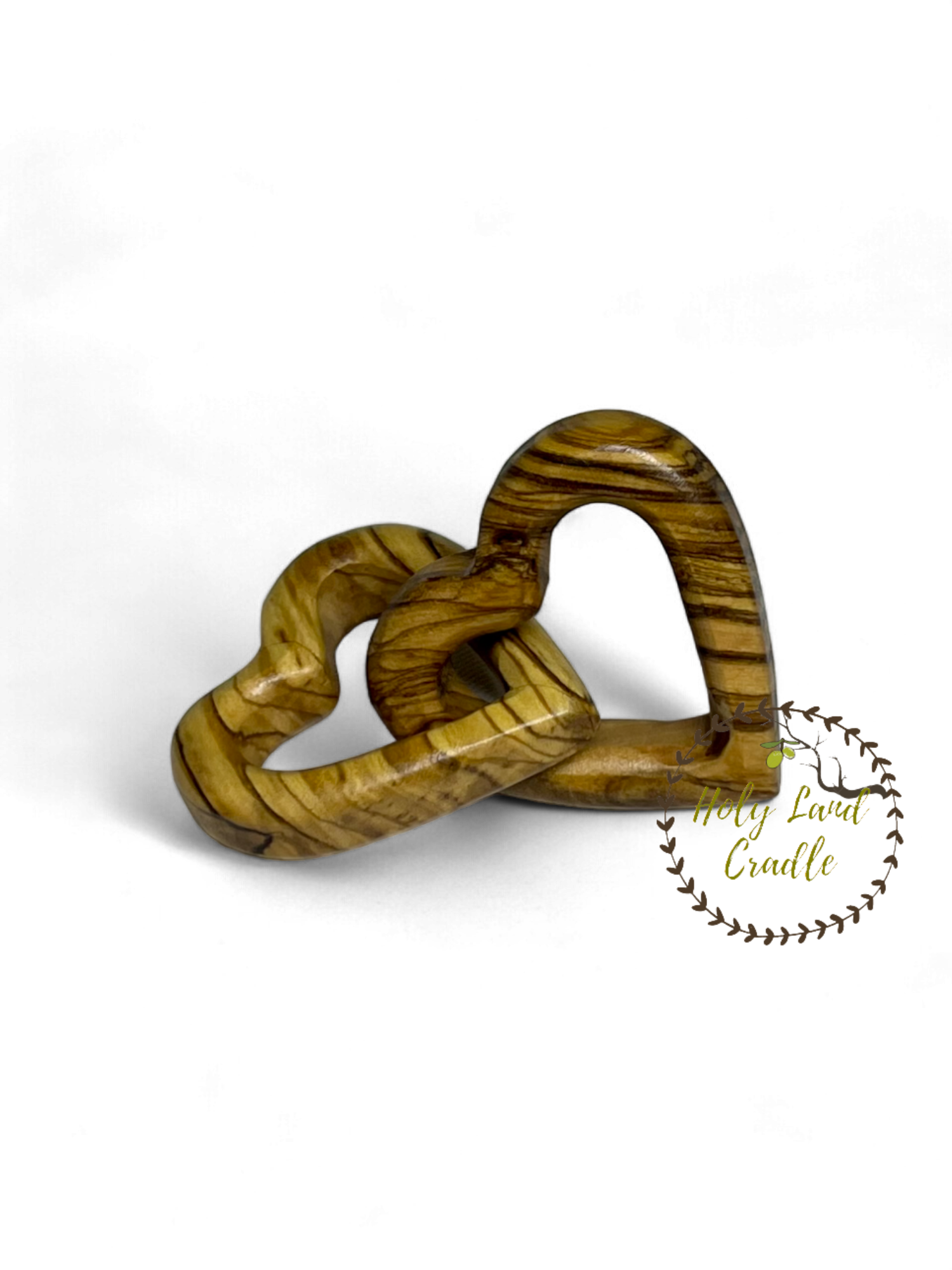 Experience the warmth and spiritual connection of our olive wood connecting hearts, thoughtfully crafted from authentic olive wood from the holy land. Each set is designed to be held in the palm, making them especially meaningful for moments of romance, longing, or connection between loved ones. These connecting hearts are perfect for expressing love, bridging the distance between those who are apart, and strengthening bonds. They serve as a comforting reminder that God is with you always and everywhere. These handcrafted olive wood connecting hearts make a meaningful gift or personal keepsake, serving as a reminder of divine presence and love. Please note that due to their handmade nature, crafts' colors, sizes, and shapes might look slightly different. 1.75" X 1.75"