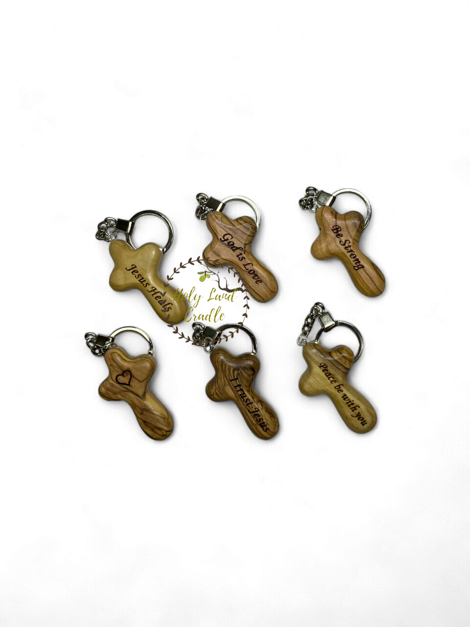 Grip this bold piece of the Holy Land with our Olive Wood Key Chain Cross. Handcrafted from authentic Bethlehem olive wood and engraved, this pocket-sized spiritual statement (1.50" x 2.50" x 0.50") defies ordinary accessories. Each cross has unique grain patterns and character—a rebellious reminder of faith that refuses to be ignored.