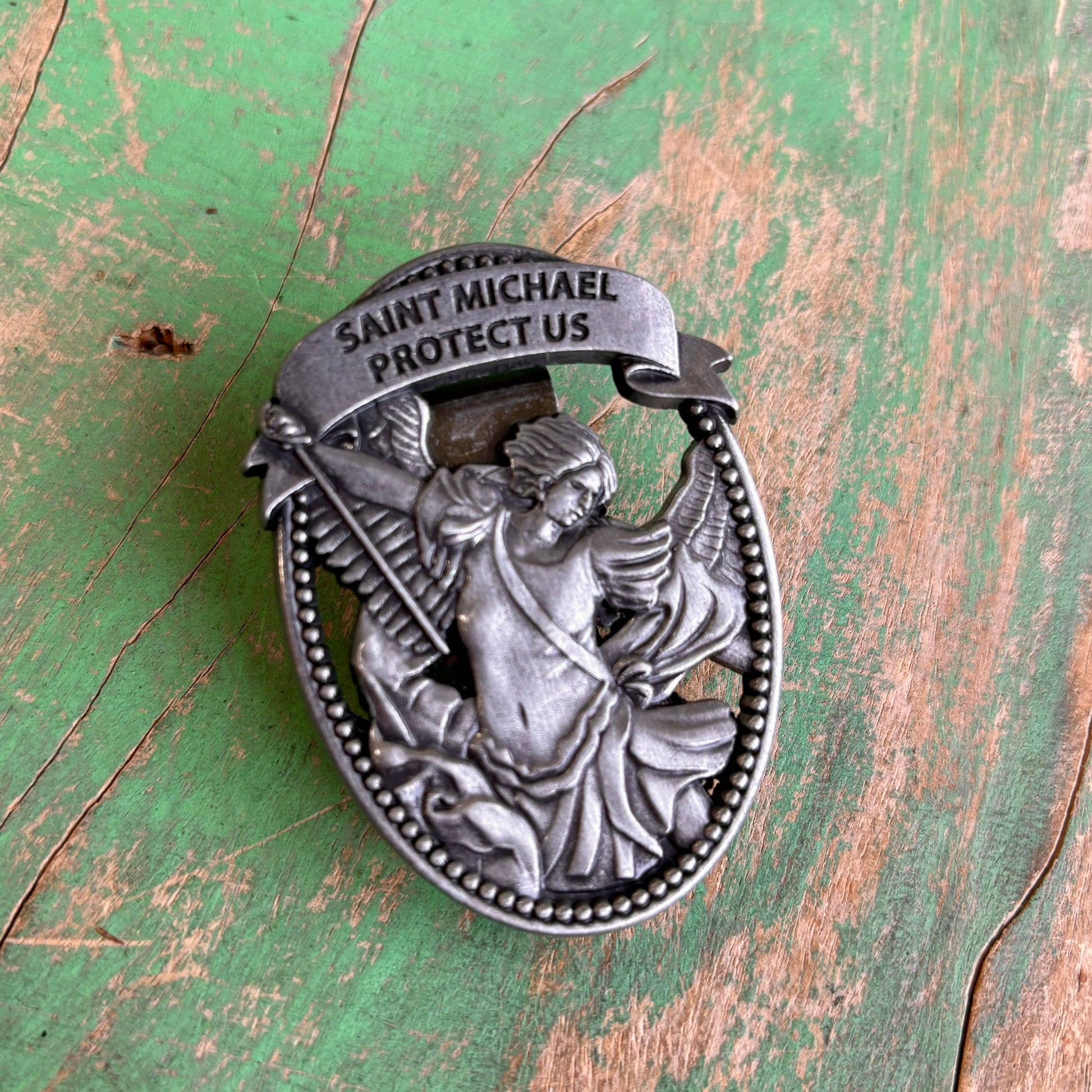Experience the divine protection of St. Michael with our Oval St. Michael Visor Clip from Love and Honor Jesus LLC. This 2.5" unisex accessory adds a touch of faith and spirituality to your daily commute. Its unique design makes it a versatile piece, fitting seamlessly with any visor. Crafted with care, this product is a reflection of our commitment to blessing others through our offerings. Carry a symbol of heavenly guardianship with you, wherever you go.