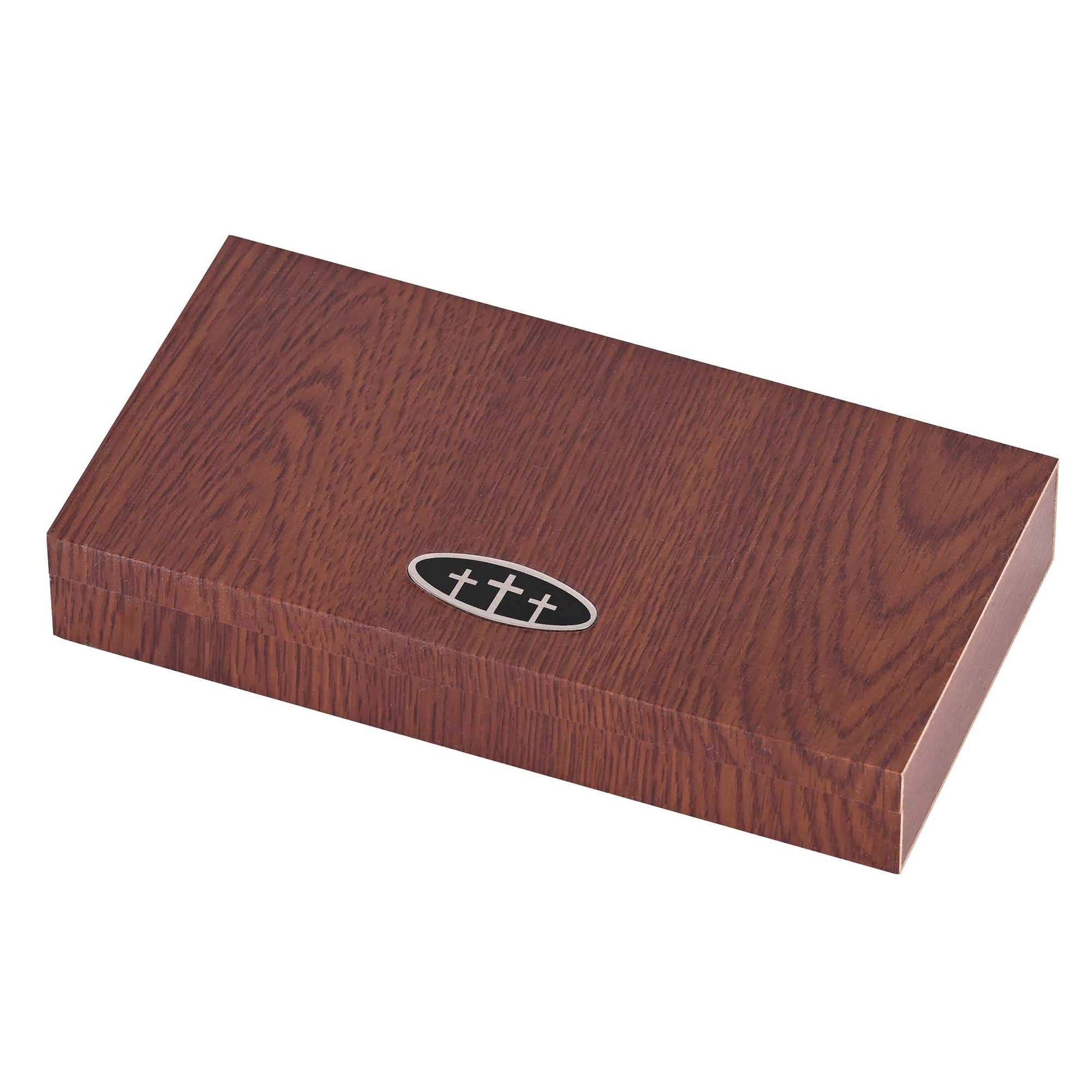 Boxed Pen and Keyring Set Is a Thoughtful Graduation Gift. Attractive Pen and Keyring Set Includes Pen with Faux Leather Rounded Barrel and a Small Cross Design, Plus Double Keyring with Brown Leatherette Padded Fob Displaying a Simple Black Cross. They Come Nestled in Black Flocked Tray Inside a Wood Gift Box with Lid. Underside Of Lid Has Graduation Theme with Psalm 20:4: May He Give You the Desire of Your Heart and Make All Your Plans Succeed. Top Of Lid Features Triple Cross Design. Size Of Box When Closed is 7-1/2 x 3-3/4 x 1-1/8. Comes In Slip Sleeve for Extra Protection. Pen Ink Is Black.