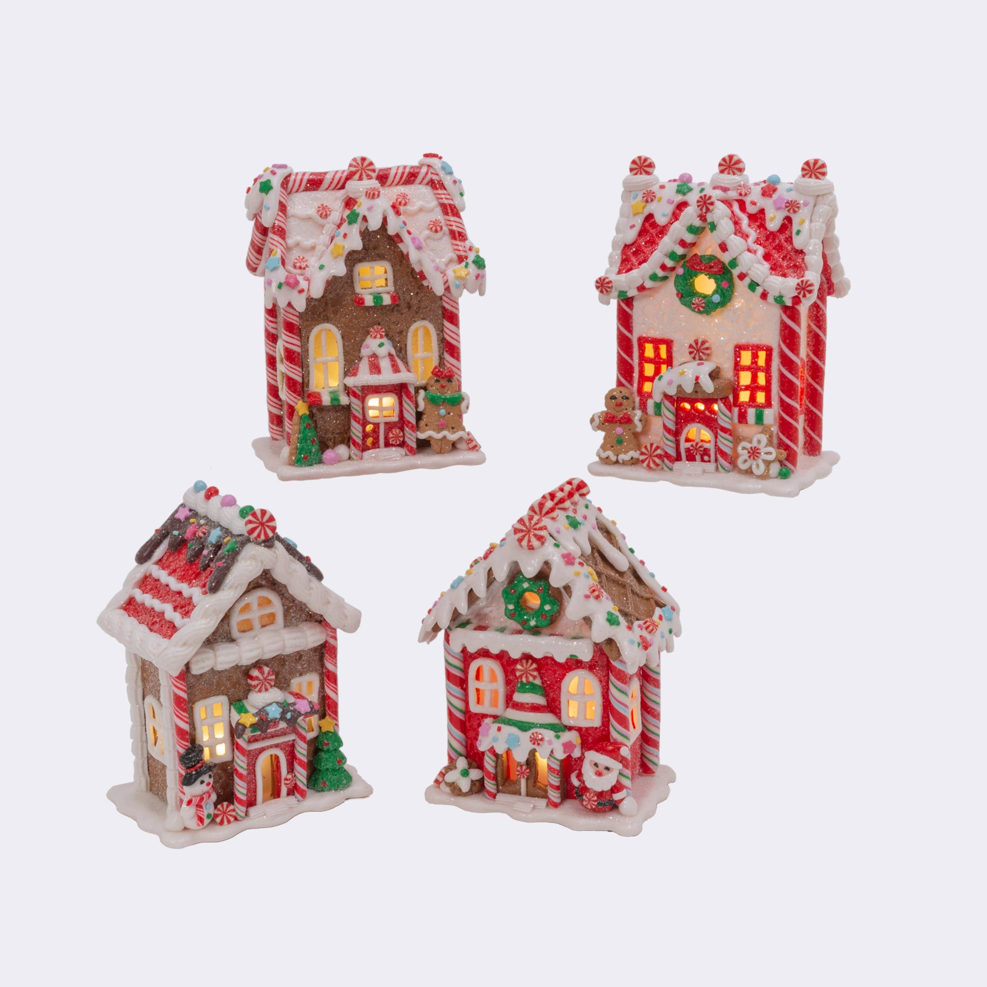 Create a whimsical, sweet holiday village with our Lighted Gingerbread Houses. Standing at 5.5 inches high, each intricately designed gingerbread house casts a warm, inviting glow, perfect for festive displays on mantels, shelves, or as part of your holiday table setting. Perfect for those who love the festive charm and nostalgia of gingerbread, these delightful houses offer a hassle free way to enhance your seasonal decor with warmth and whimsy.