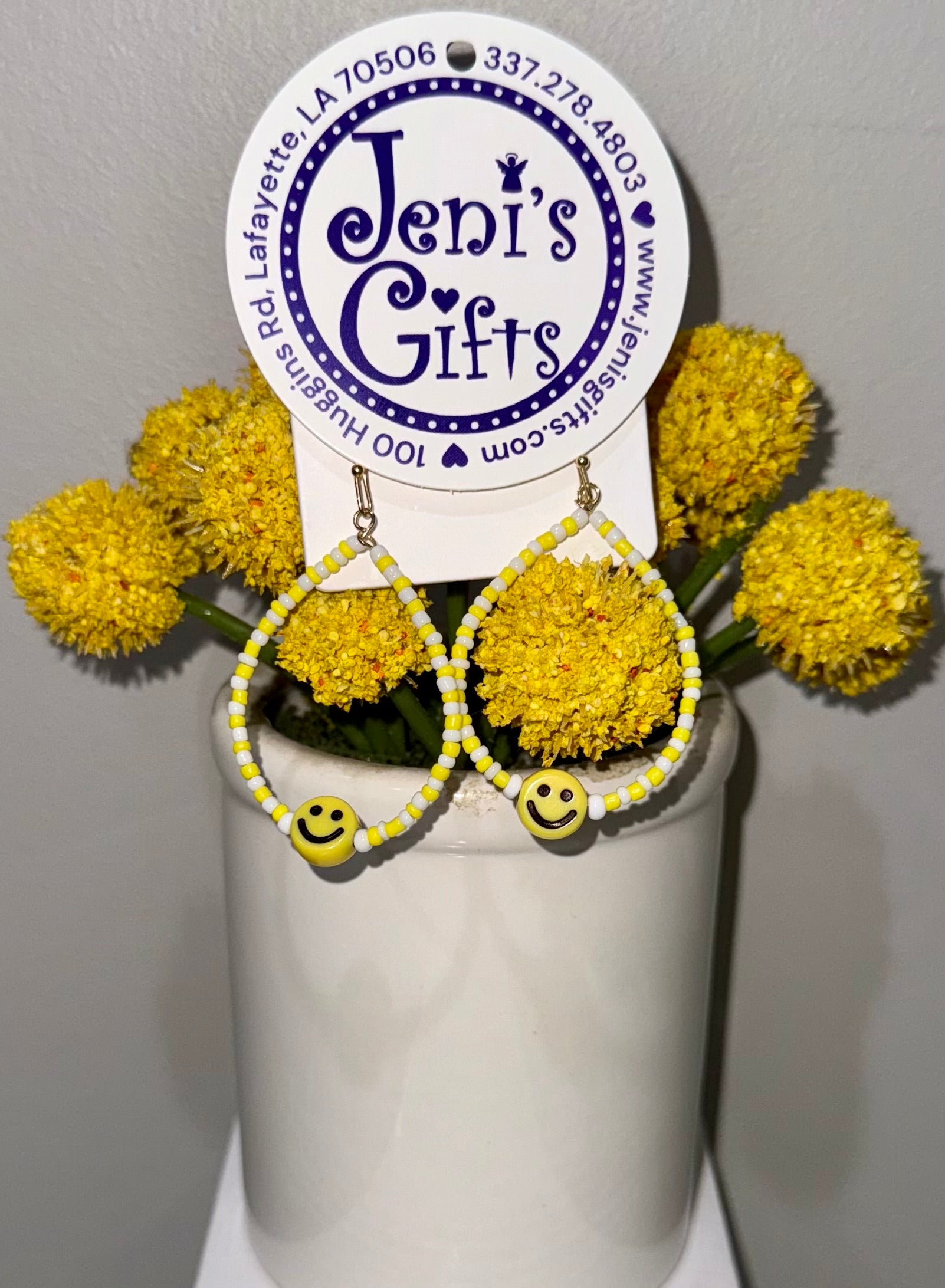 Brighten up any outfit with these cheerful Smiley Faces Yellow & White Bead Dangles! These playful accessories feature happy smiley faces paired with vibrant yellow and crisp white beads that dangle delightfully with every movement. Perfect for adding a pop of positivity and fun to your everyday style or bringing good vibes to special occasions.