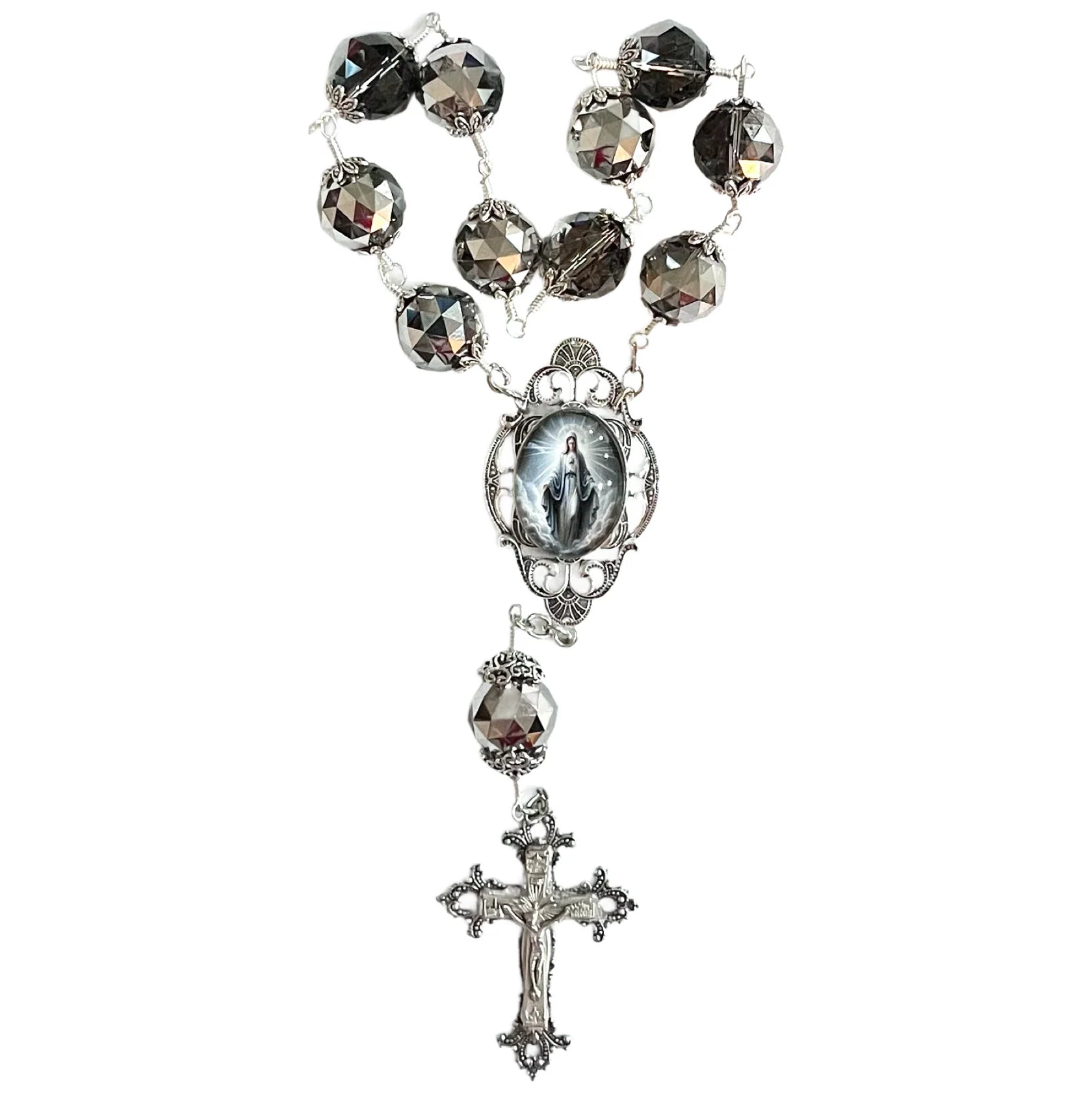Our Lady of Grace Table Rosary, One Decade, Large, Gunmetal & Silver