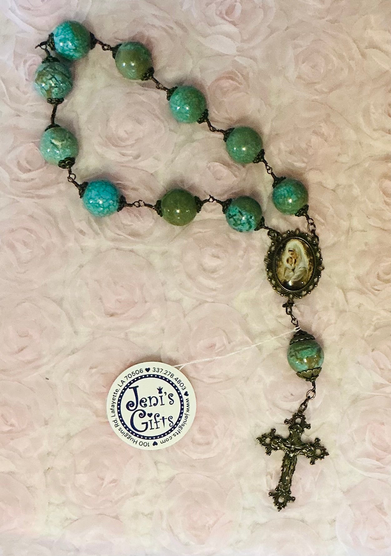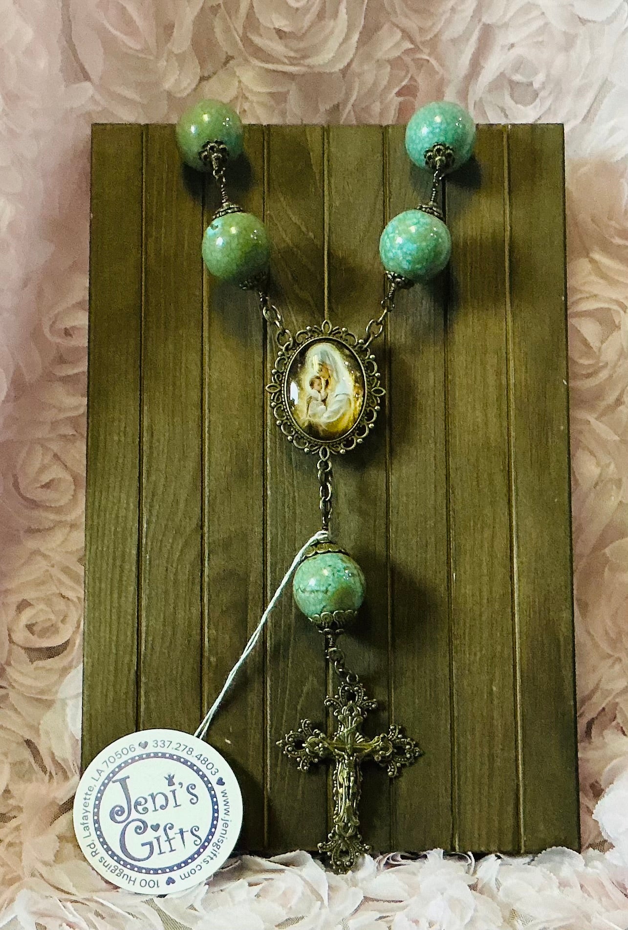 Beautiful - Turquoise - this table rosary is a conversation piece. Just pick it up to feel the weight of these rosary beads. You will love this piece. This item is a limited edition with only one left in stock. The picture does not do it justice; you must see to believe it.