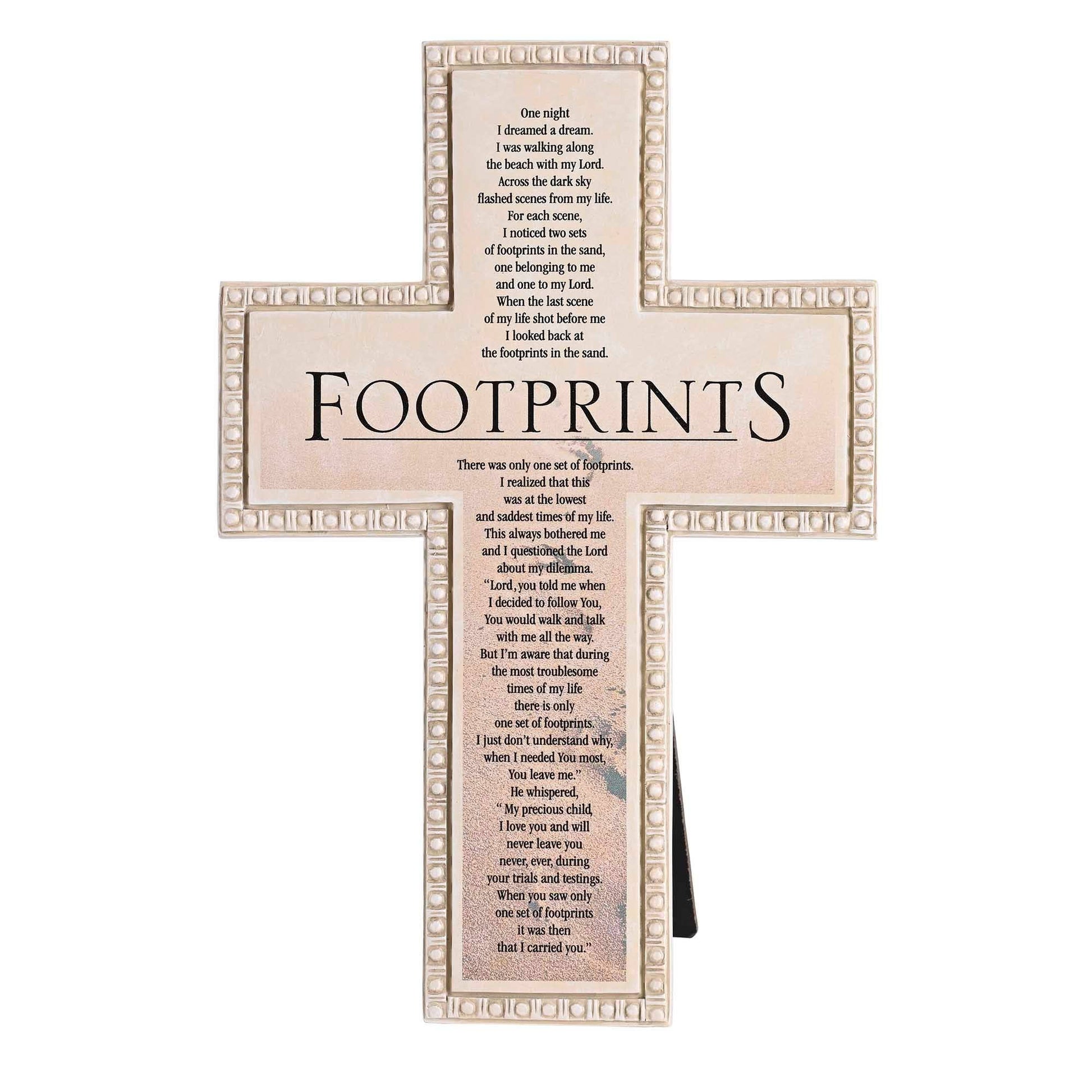 A Magnificent Tabletop Cross Intricately Embellished With Footprints, Showcasing Exquisite Details. Standing At A Height Of 10 Inches And Crafted In Elegant Ivory Tones, This Piece Serves As A Remarkable Addition To Any Tabletop Decor Or Comes With A Wall Hook For A Display. Footprints Copyrighted By Margaret Fishback Powers