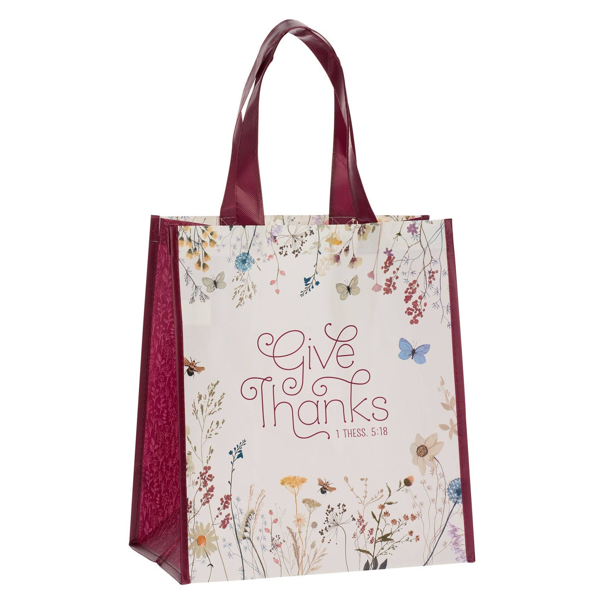 Tote Burgundy/White Floral Printed Give Thanks 1 Thess. 5:18