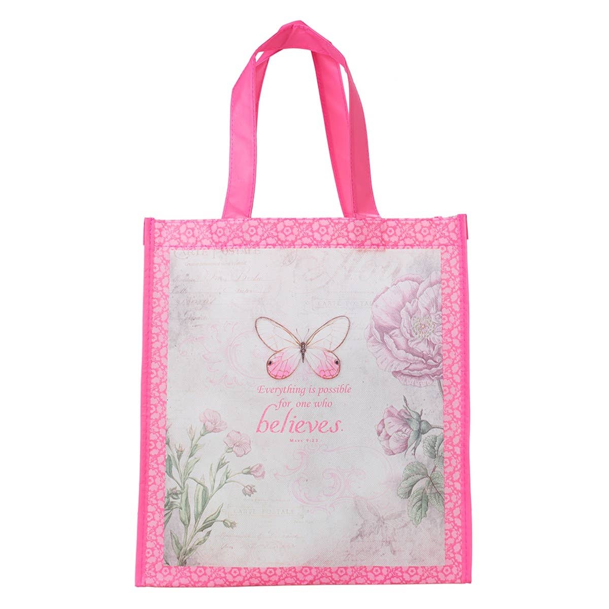 Tote Pink Floral/Butterfly Printed Believe Mark 9:23