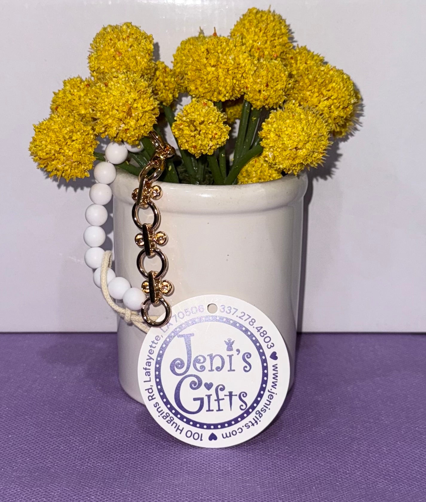 Elevate your style effortlessly with this White Bead and Gold Chain Stretch Bracelet. Combining the timeless elegance of white beads with a delicate gold chain, it offers a versatile accessory that complements any outfit. The stretch design ensures a comfortable fit for all-day wear, making it perfect for both casual and formal occasions. Add a touch of sophistication to your jewelry collection with this chic and easy-to-wear bracelet.