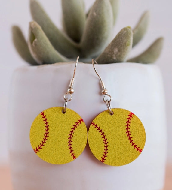 Show your softball pride with these vibrant acrylic circle dangles designed to mimic softballs. Featuring a bright yellow base accented with red stripes, they capture the classic look of a softball while adding a playful, eye-catching touch to your style. Perfect for fans and players alike, these dangles let you celebrate the game wherever you go. Light-Weight.
